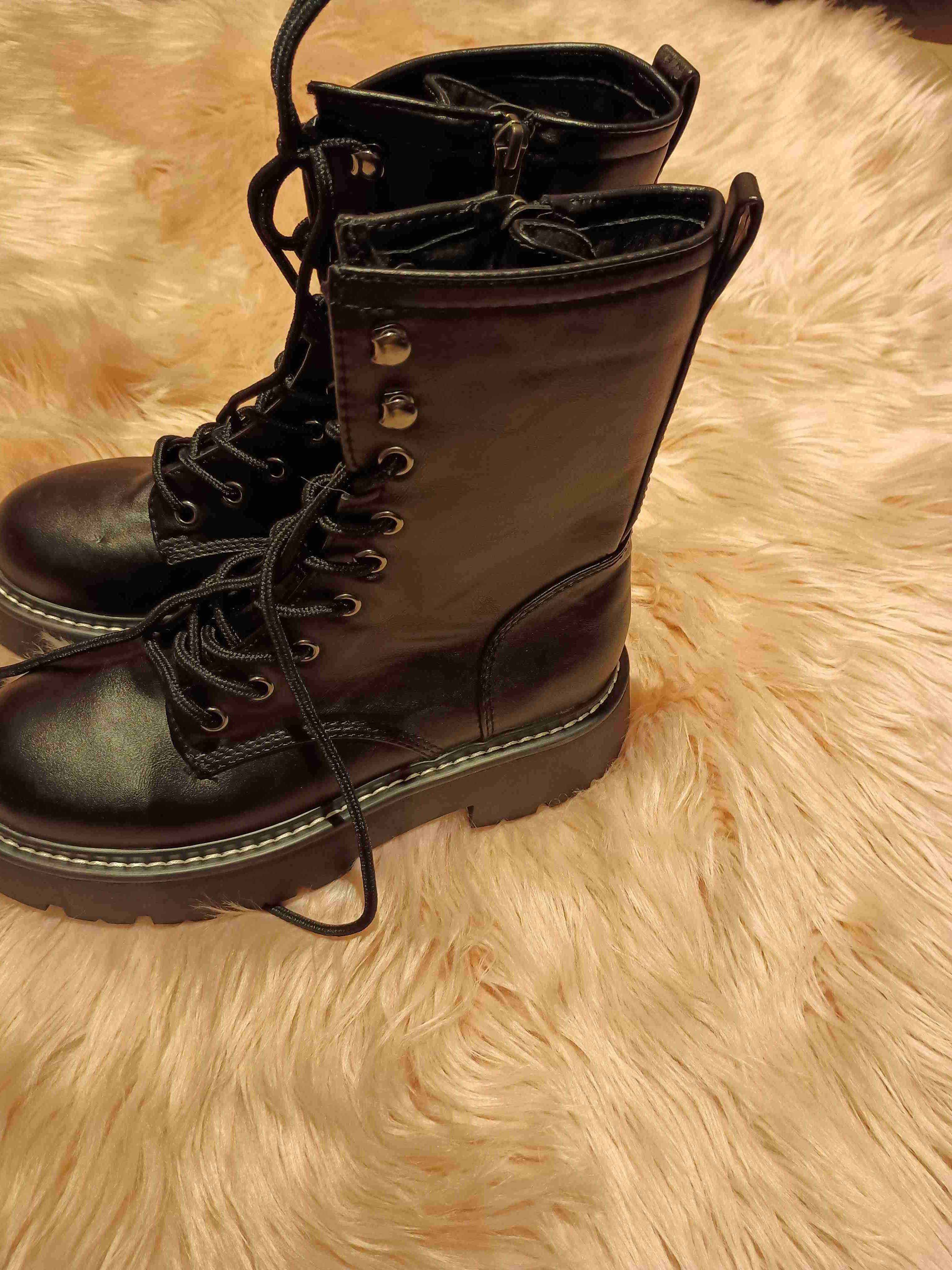Botas negras de combate con cordones y cierre lateral. Ideal para un look casual y resistente. Buen estado, poco uso. Cartera negra nine west poco uso