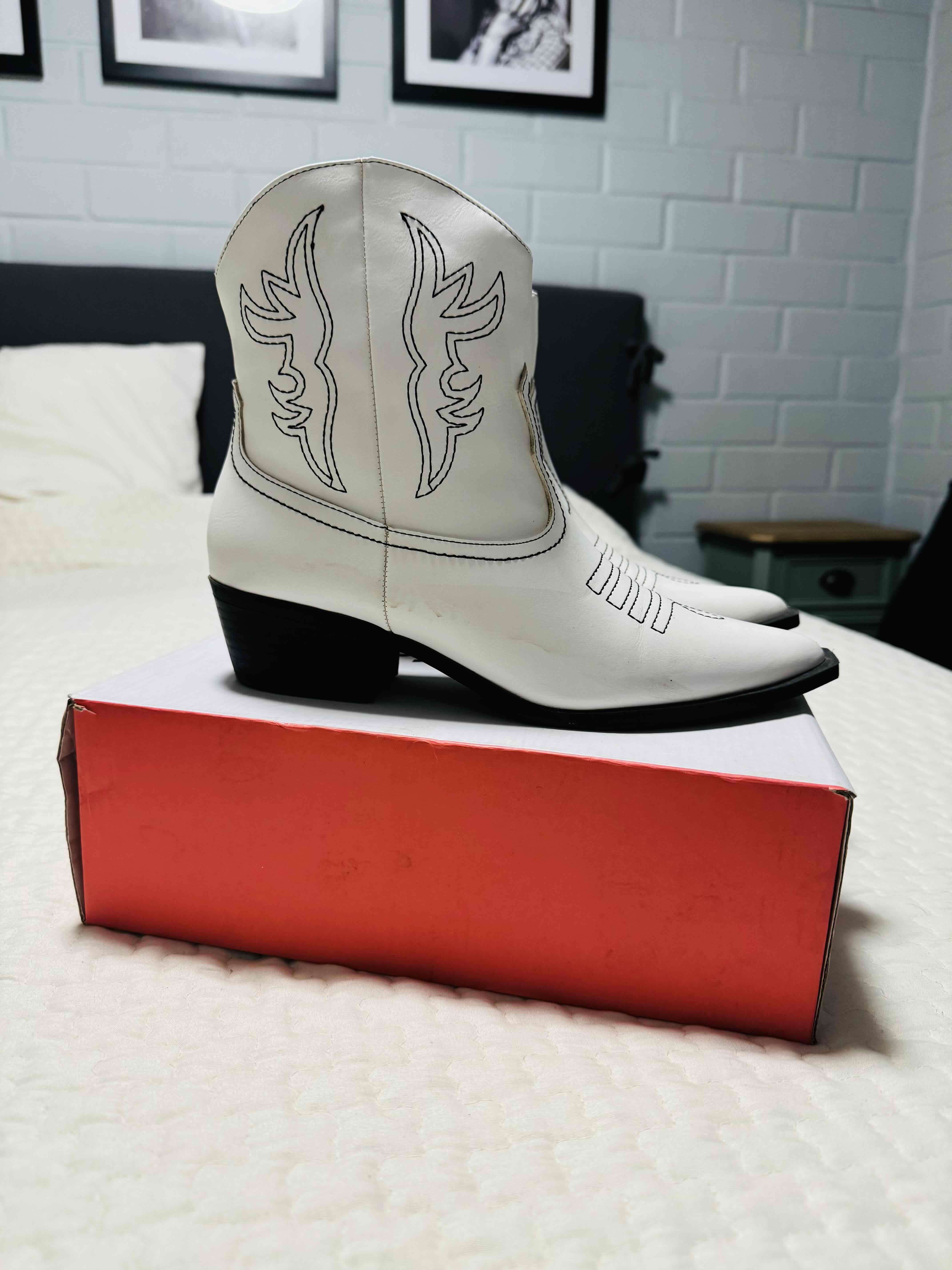Botas estilo vaquero de cuero blanco, perfectas para un look western. En buen estado.