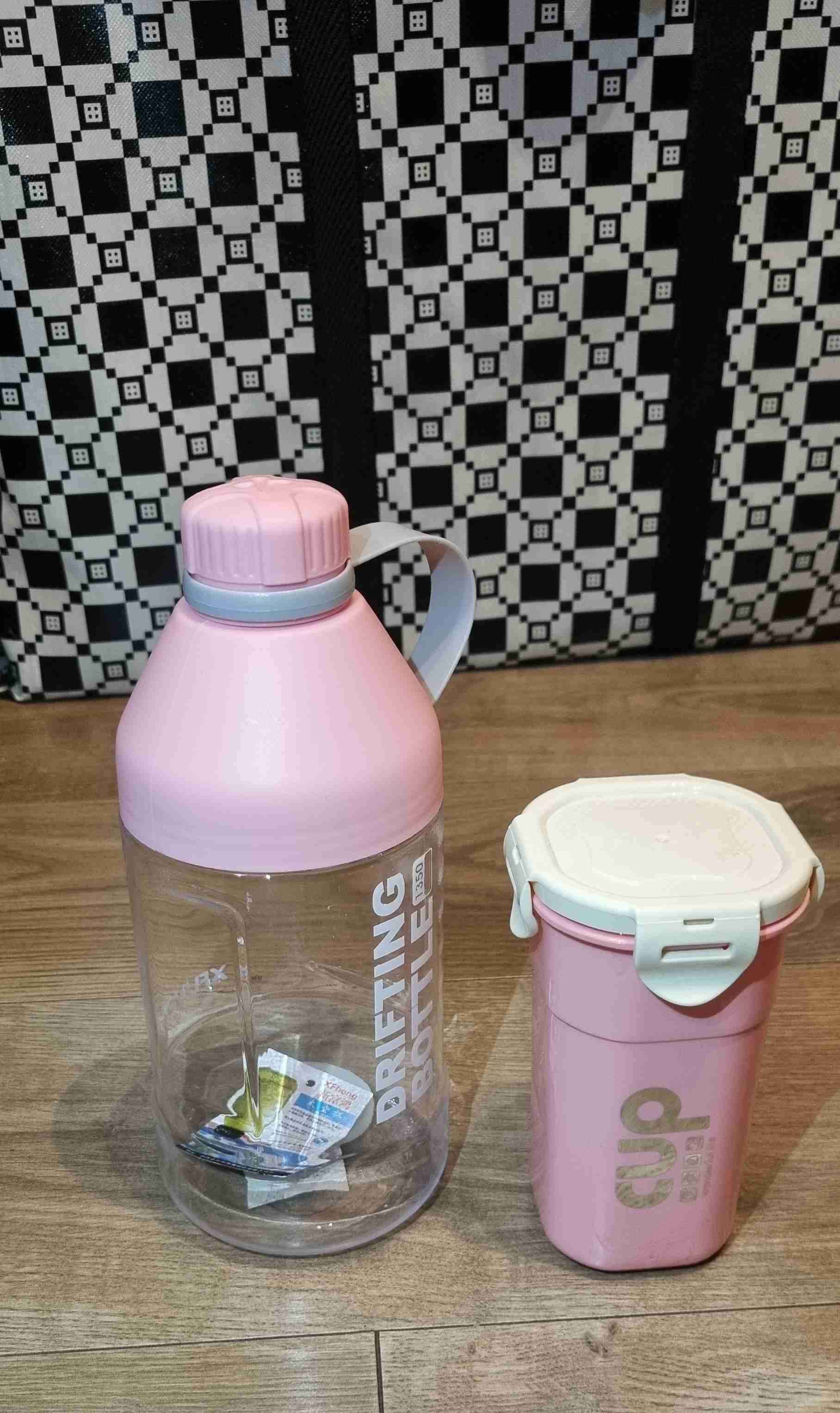 Botella y vaso rosa sport