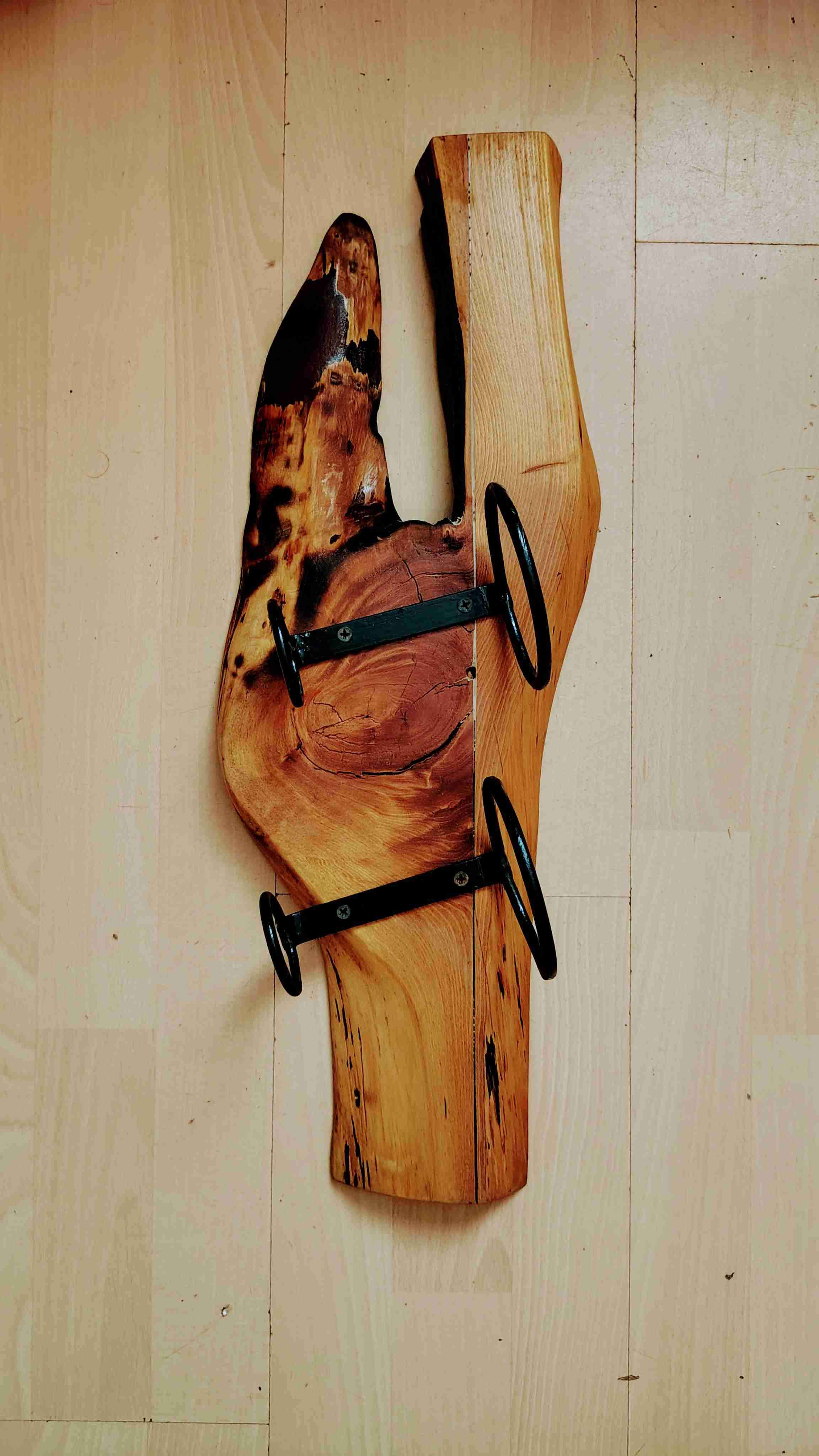 Botellero de pared hecho a mano en madera rústica. Ideal para decorar. En buen estado.