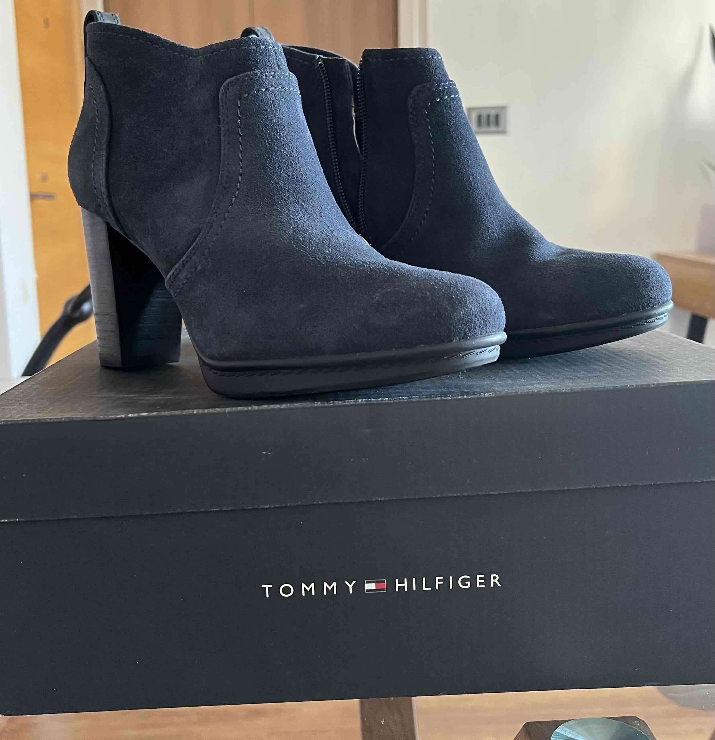 Elegantes botines de gamuza azul, perfectos para ocasiones formales o casuales. En buen estado con leves signos de uso.