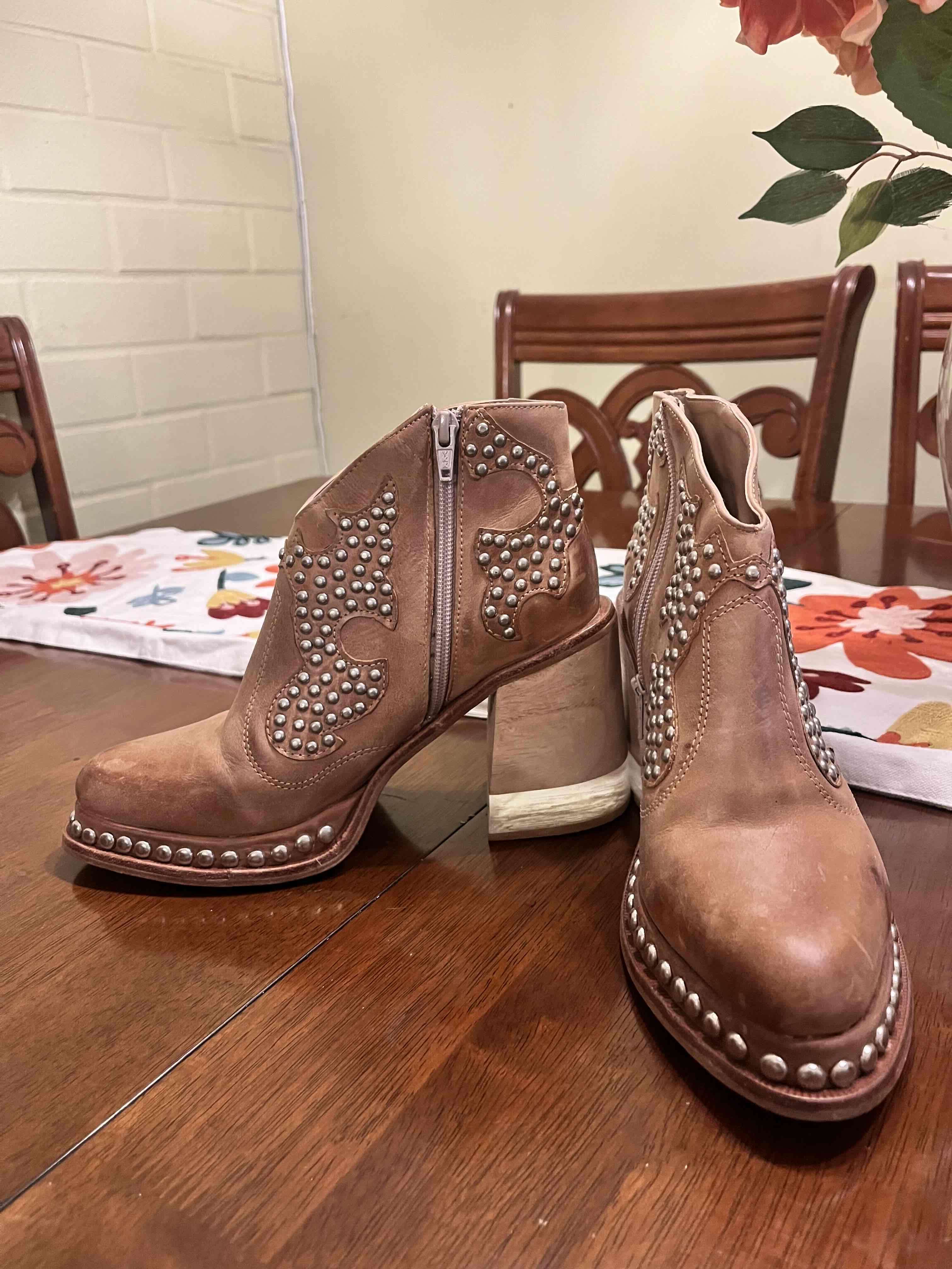 Botines marrones de cuero con diseño de tachas, ideales para un look casual. En buen estado y con cierre lateral. Calzado argentino 100% cuero Modelo Petra Talla 37 Casi nuevos