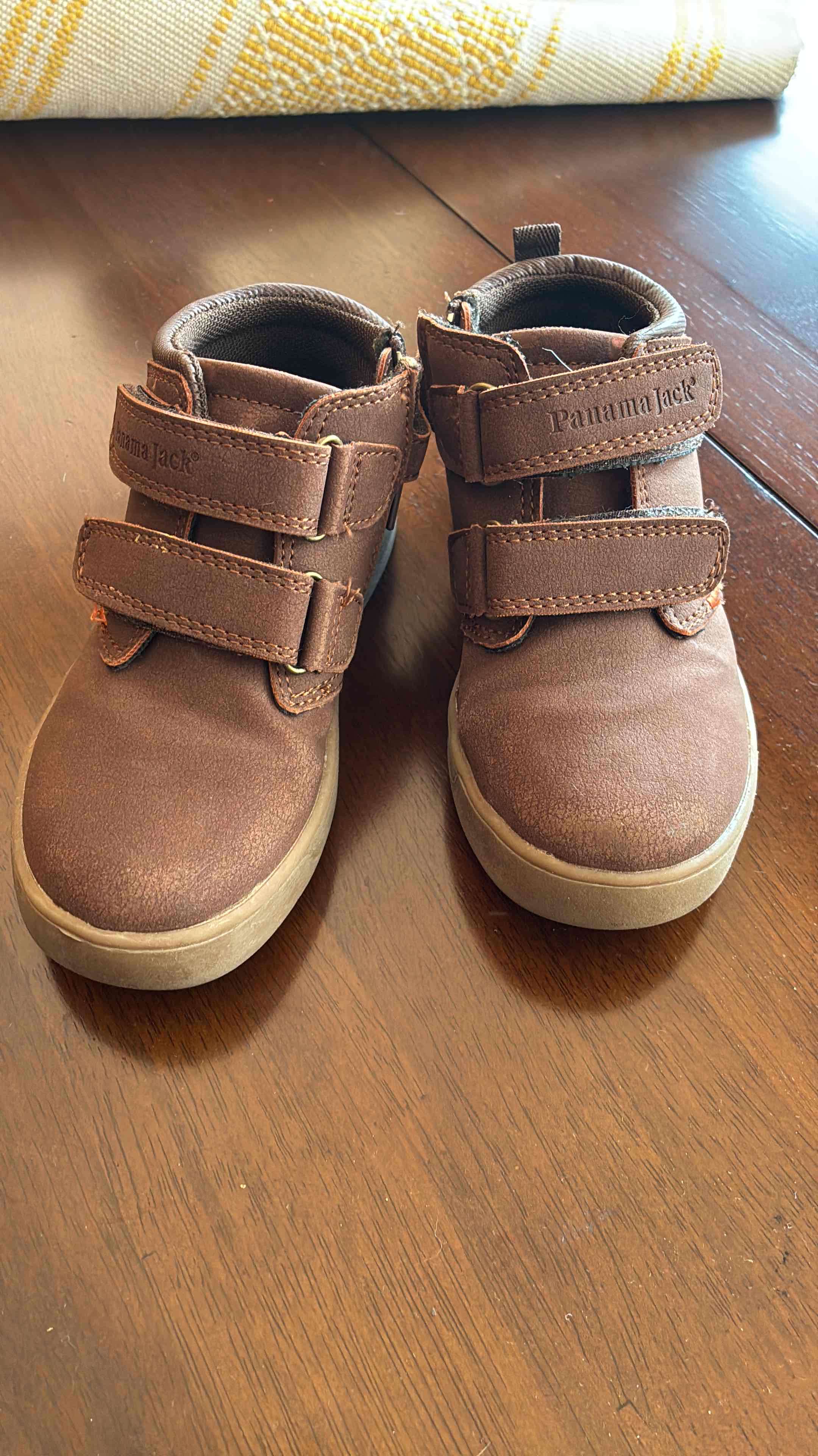 Botines marca Panamá Jack para niño con cierre de velcro, color café. Ideales para el invierno, en buen estado. Talla 26.