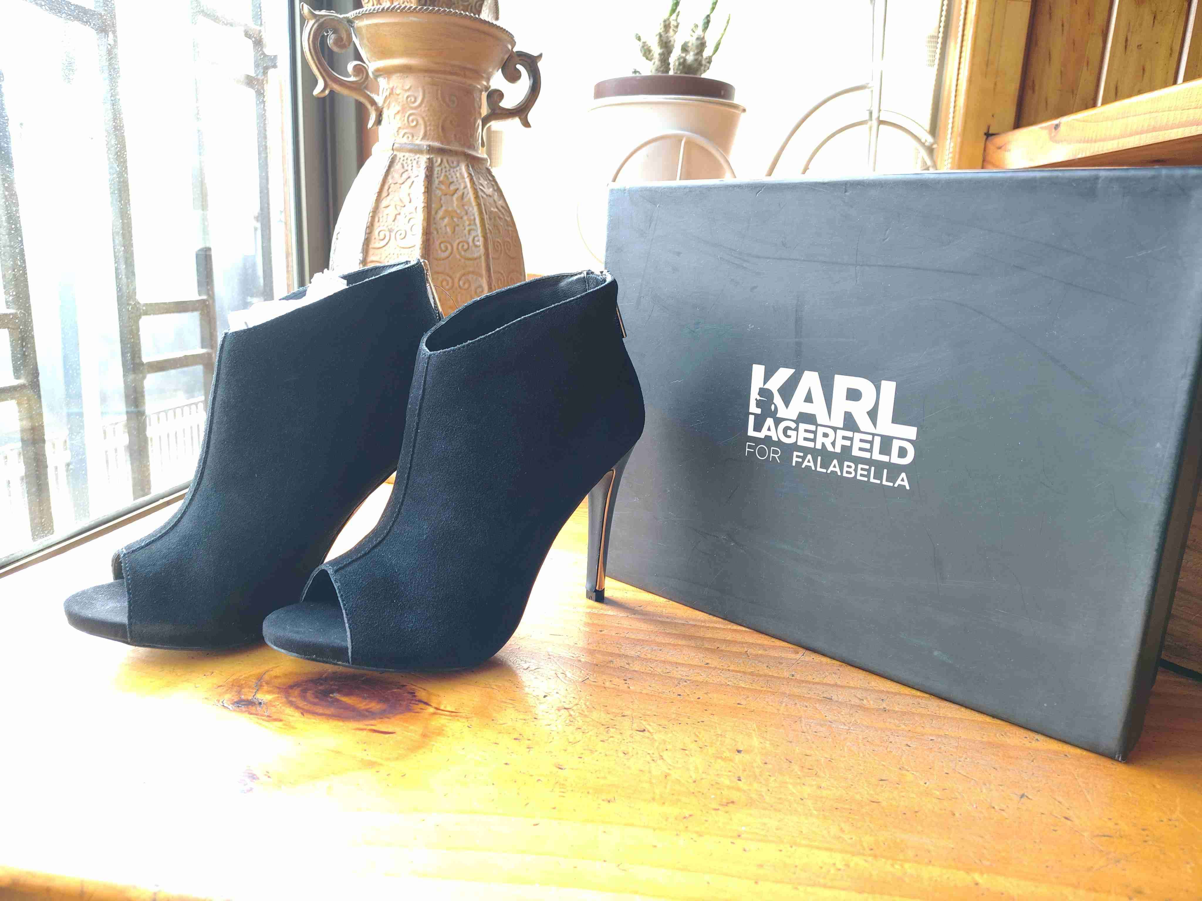 NUEVOS. En su caja original, además de su bolsa protectora. Diseñador Karl Lagerfeld. Elegantes, 100% cuero gamuza, tacón plateado. N° 37.