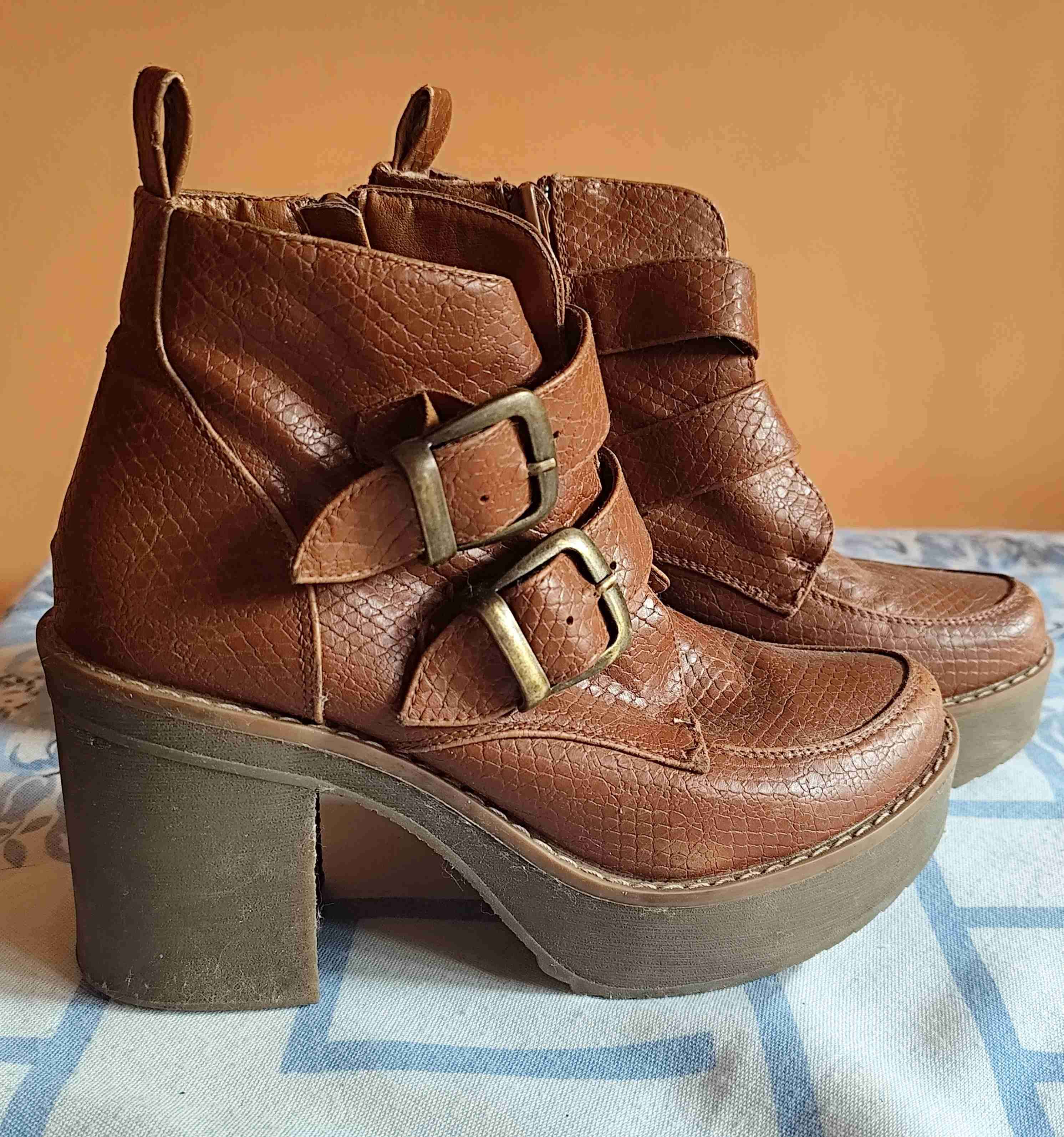 Botines de cuero marrón con detalles por estar guardados, de hebillas, perfectos para un look casual. En buen estado, ideal para el día a día, marca c/moran talla 36 medida de pie 23 cm