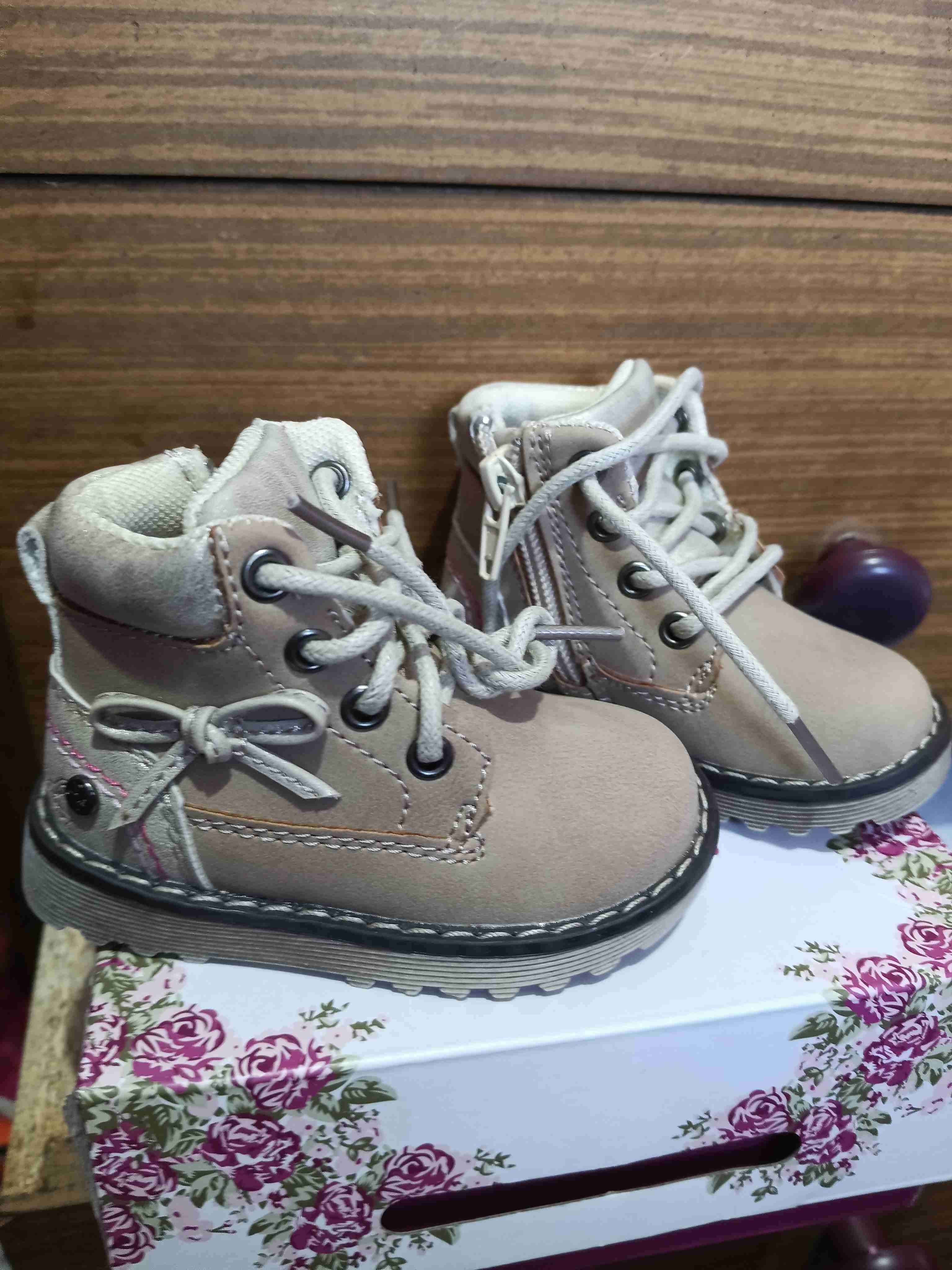 Botines para niña de color beige con cierre lateral y cordones. Ideales para el invierno. Nuevos