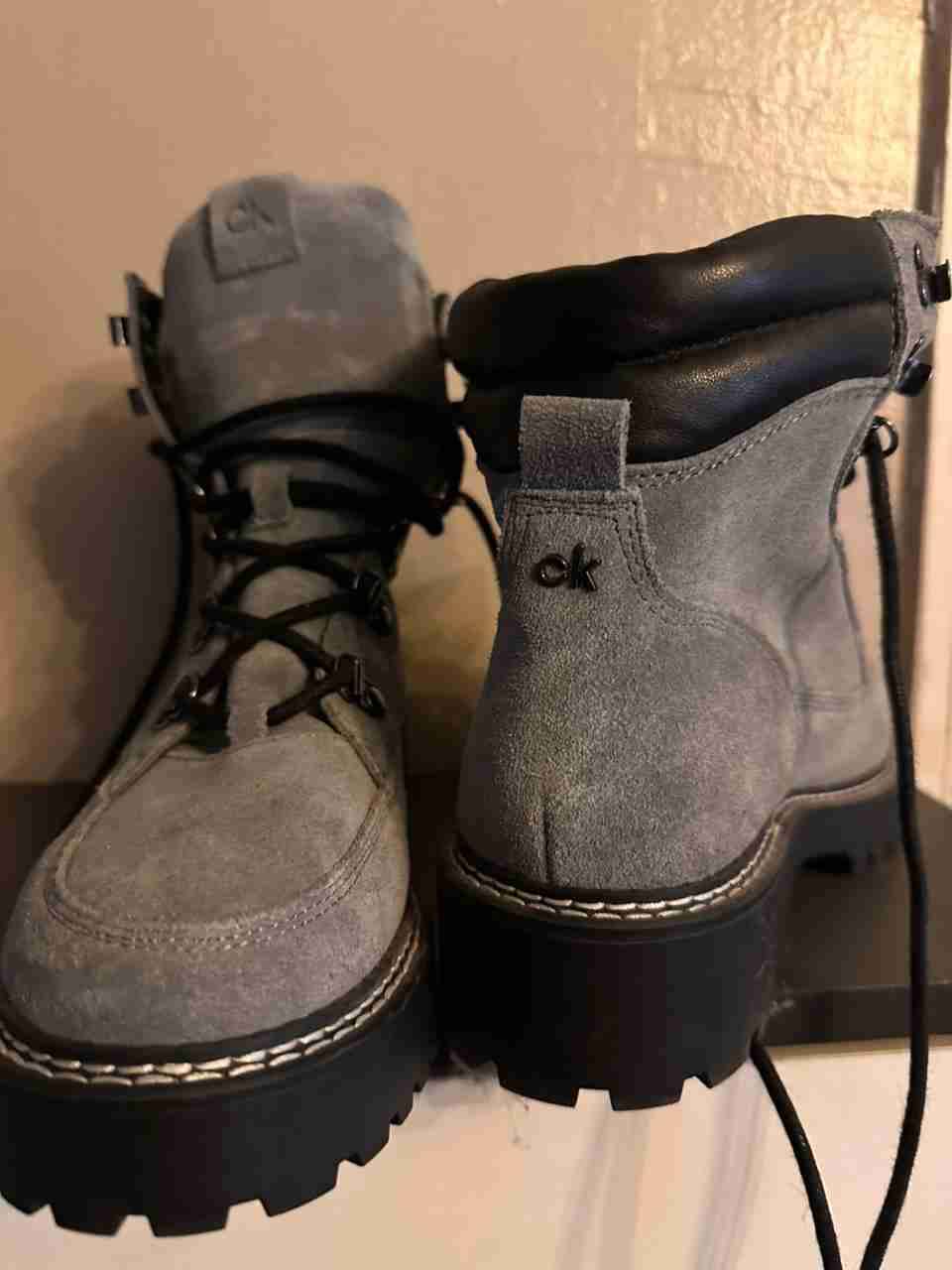 Botines de gamuza grises, estilo moderno y resistente. Sin uso nuevos talla 38