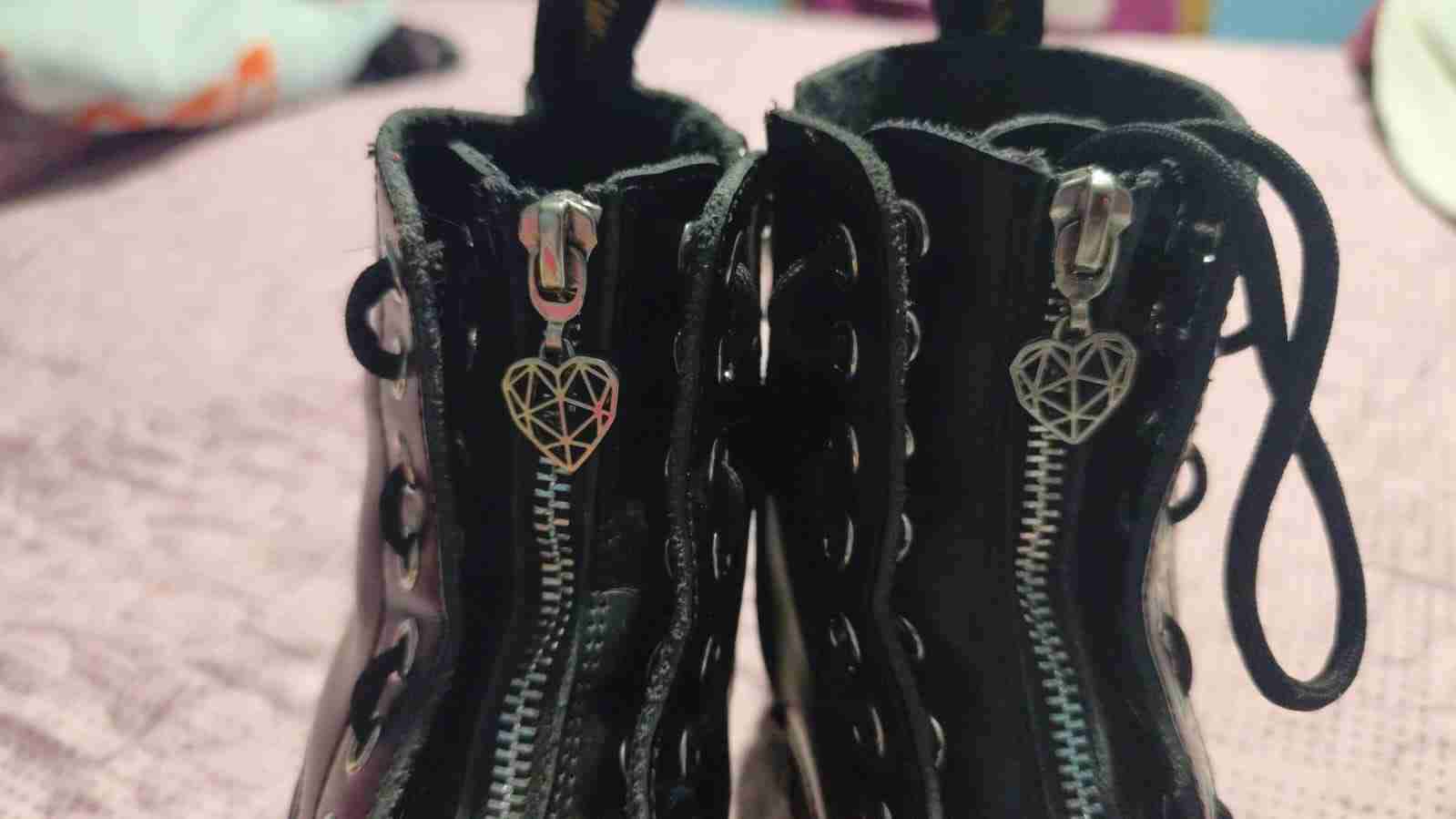 Botines de cuero negro con cierre y detalle de corazón. Ideales para un look casual y moderno. No tienen detalles, no los he usado pero tampoco tienen etiqueta