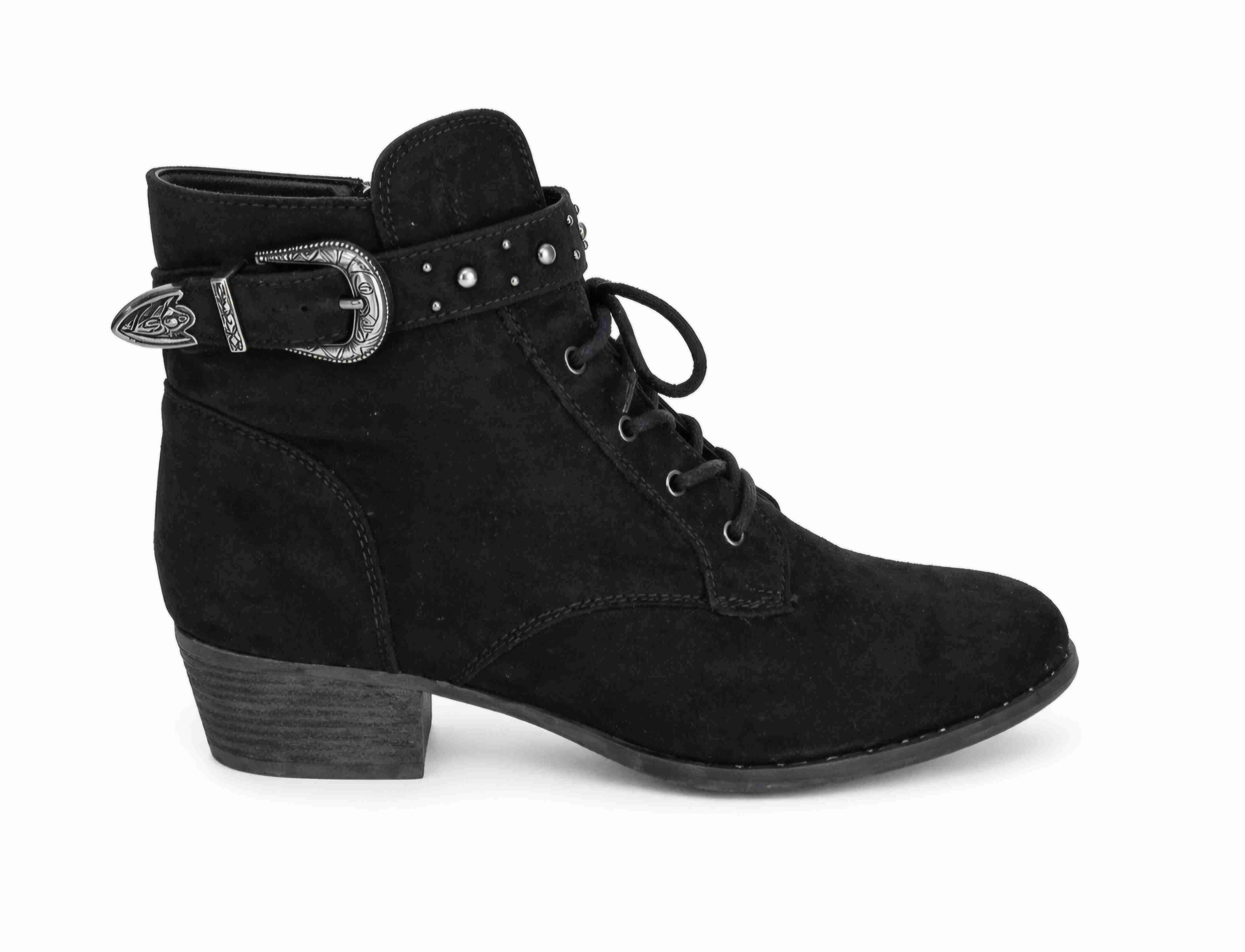 Botines de gamuza negros, decorados con hebilla metálica. Ideales para el otoño.