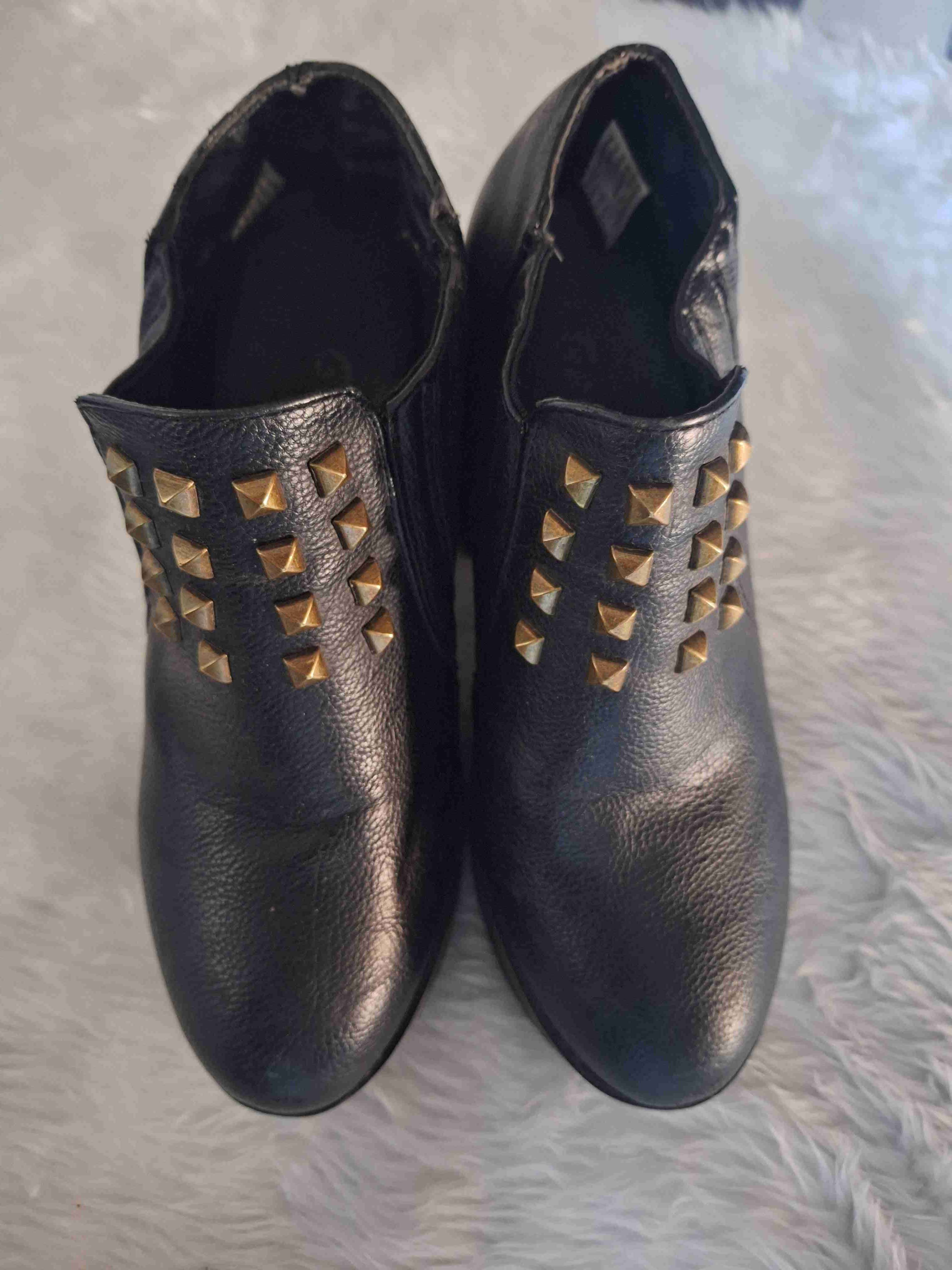 Botines de cuero negro con tachas doradas, en buen estado. Perfectos para un look casual con estilo.