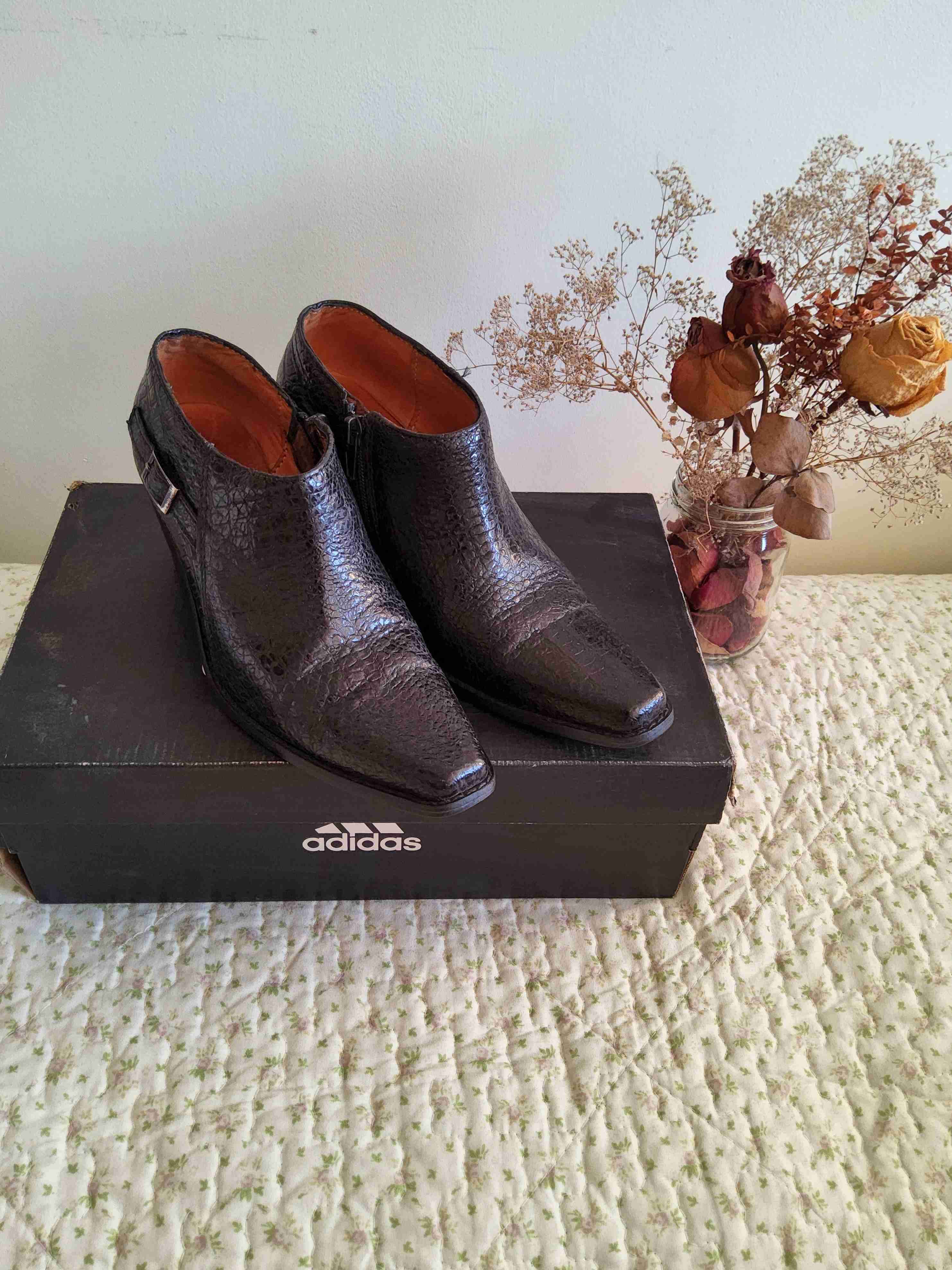 Botines de cuero negro, elegantes y bien cuidados. Ideales para un look sofisticado.