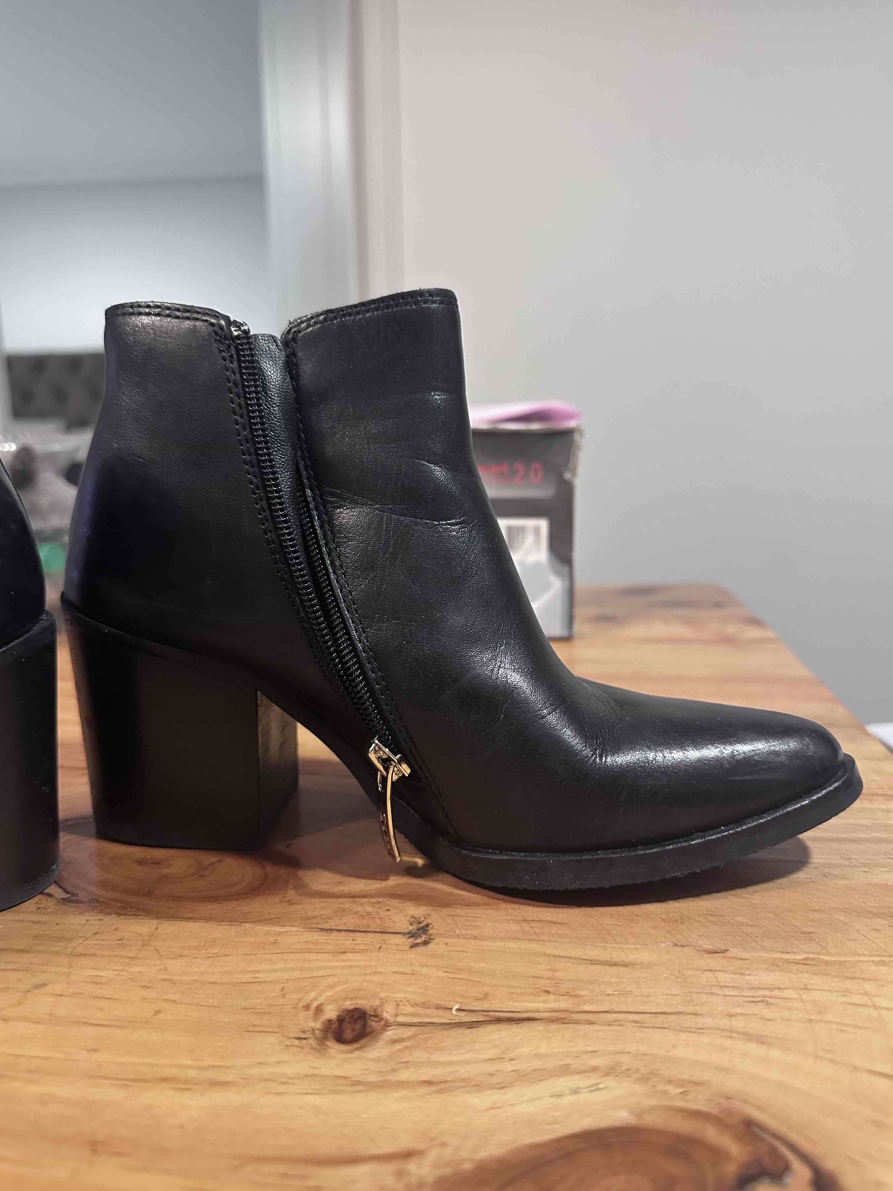Botines de cuero negro con cremallera lateral, solo un uso número 35, los compré en $69.900