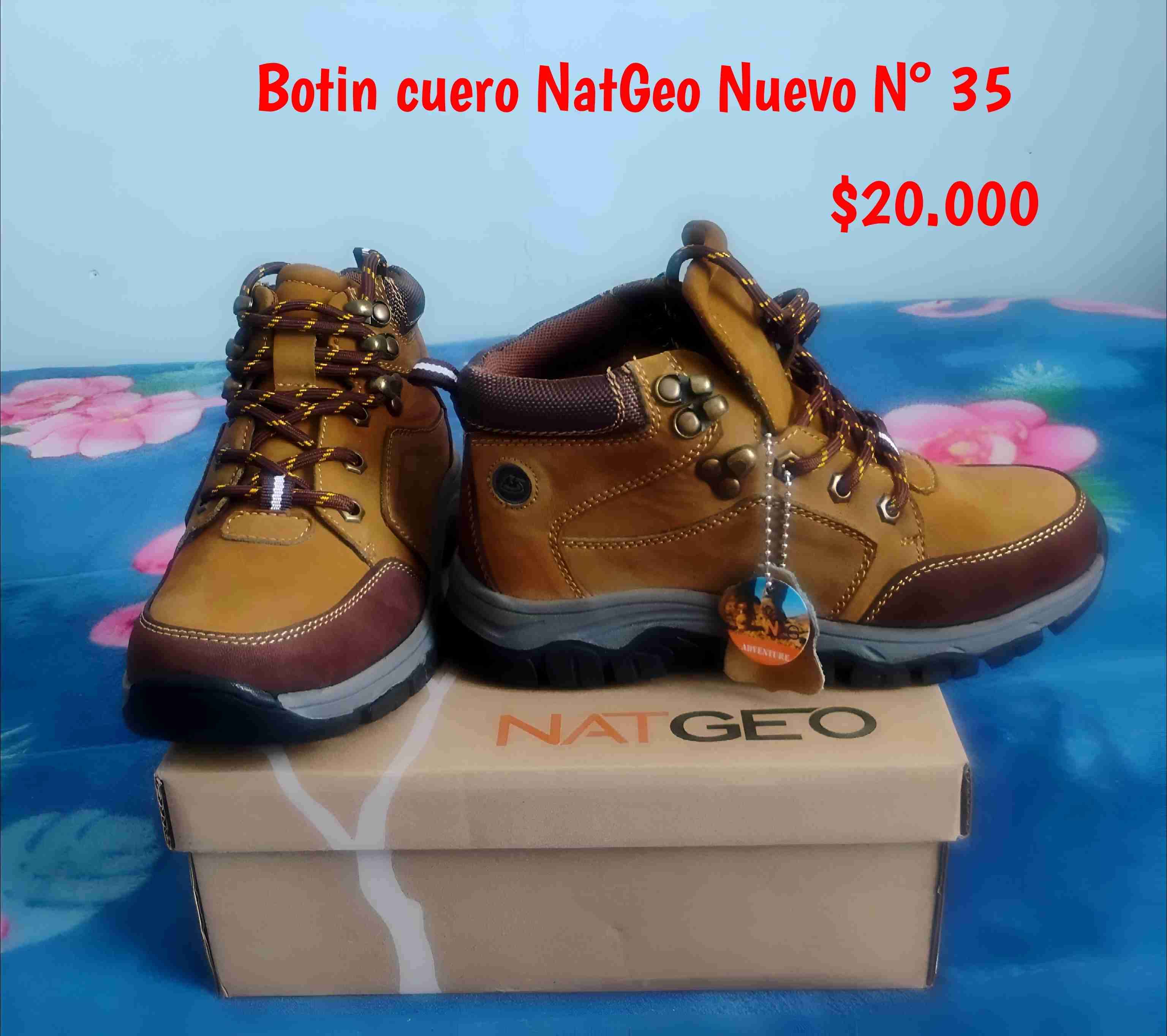 Botines de cuero NatGeo, nuevos y sin usar, talla 35. Ideales para trekking y aventuras al aire libre.