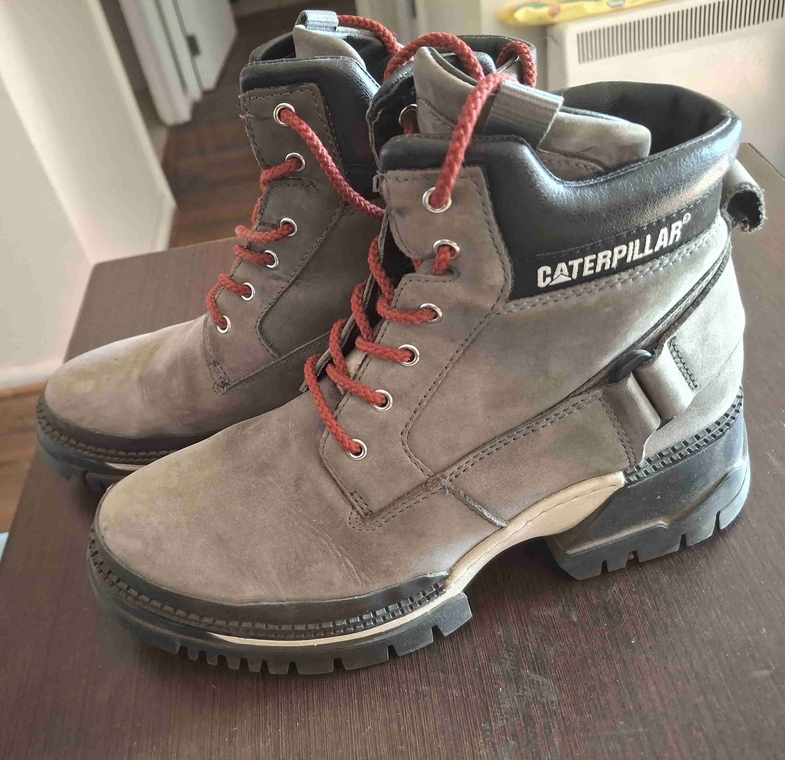 Botas Cat para terreno, perfectas para trabajos pesados o actividades al aire libre. En buen estado, con signos leves de uso.