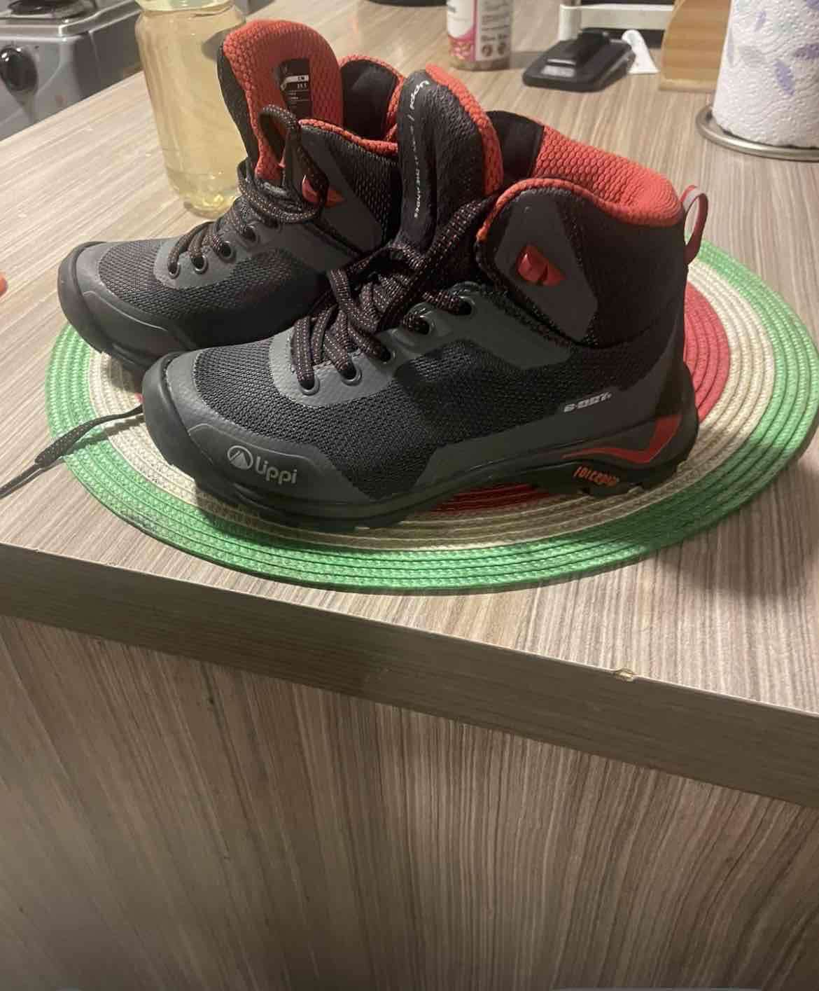 Bototos Uppi de color negro y rojo, perfectos para actividades al aire libre. En buen estado, ideales para trekking o uso diario. Niño talla 30
