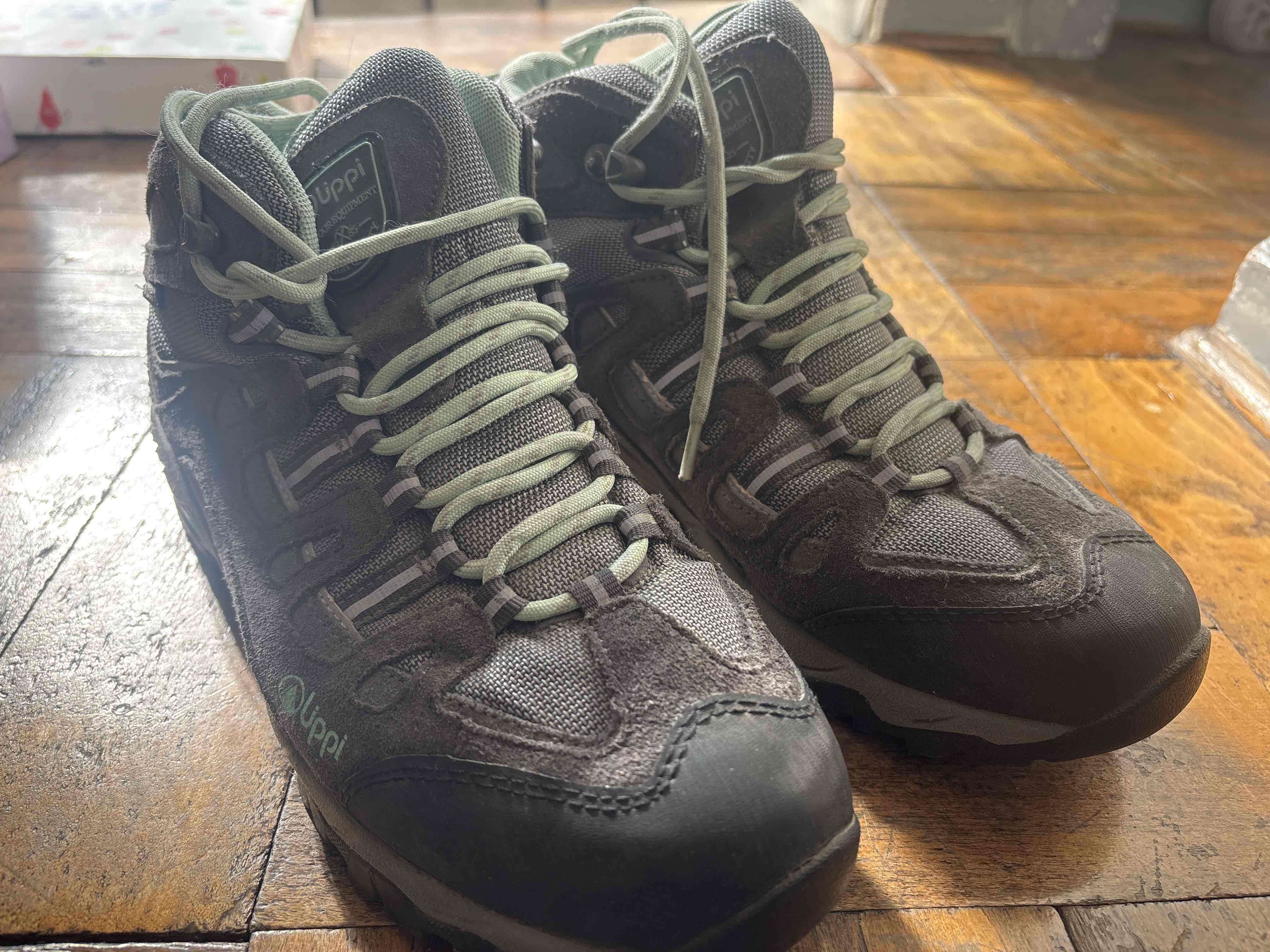 Bototos de trekking grises, ideales para caminatas al aire libre. En buen estado con uso leve.