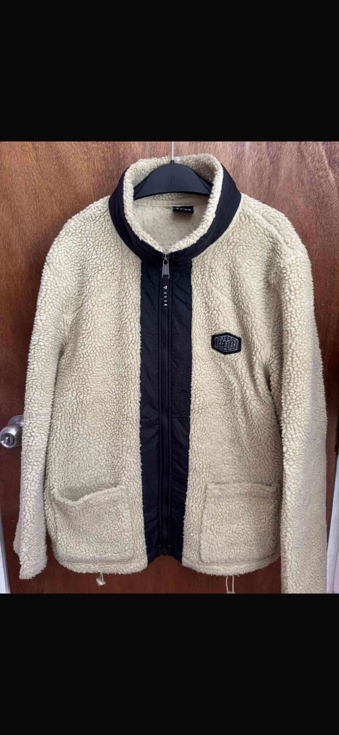 Chaqueta de lana estilo casual en tonos beige y negro. Perfecta para mantenerte abrigado en invierno. En buen estado, con signos mínimos de uso.