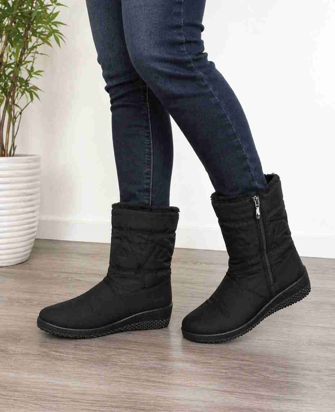 Botas negras acolchadas con cremallera lateral, ideal para días fríos. Poco uso, en buen estado.