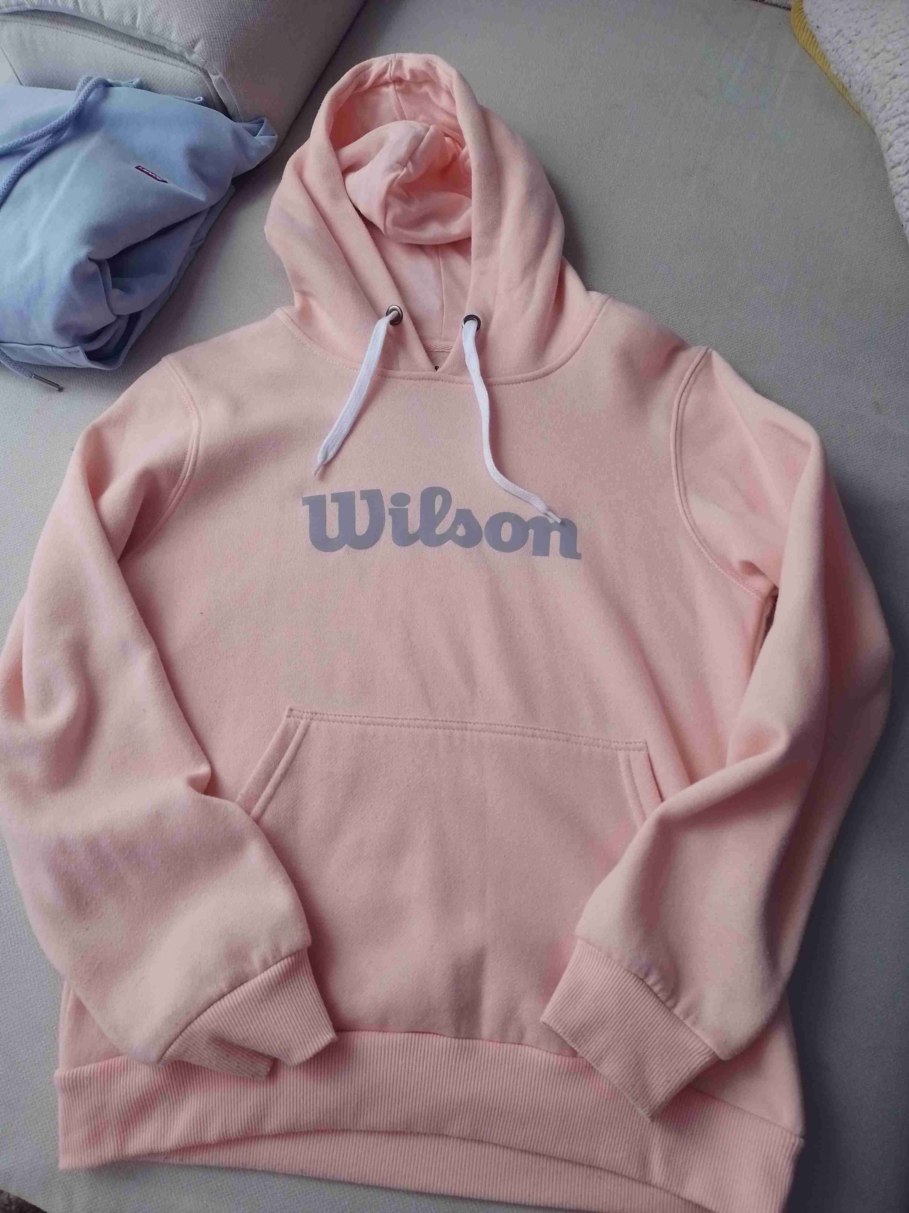Polerón cómodo y abrigador, ideal para días fríos. En buen estado, color rosa con logo Wilson al frente.