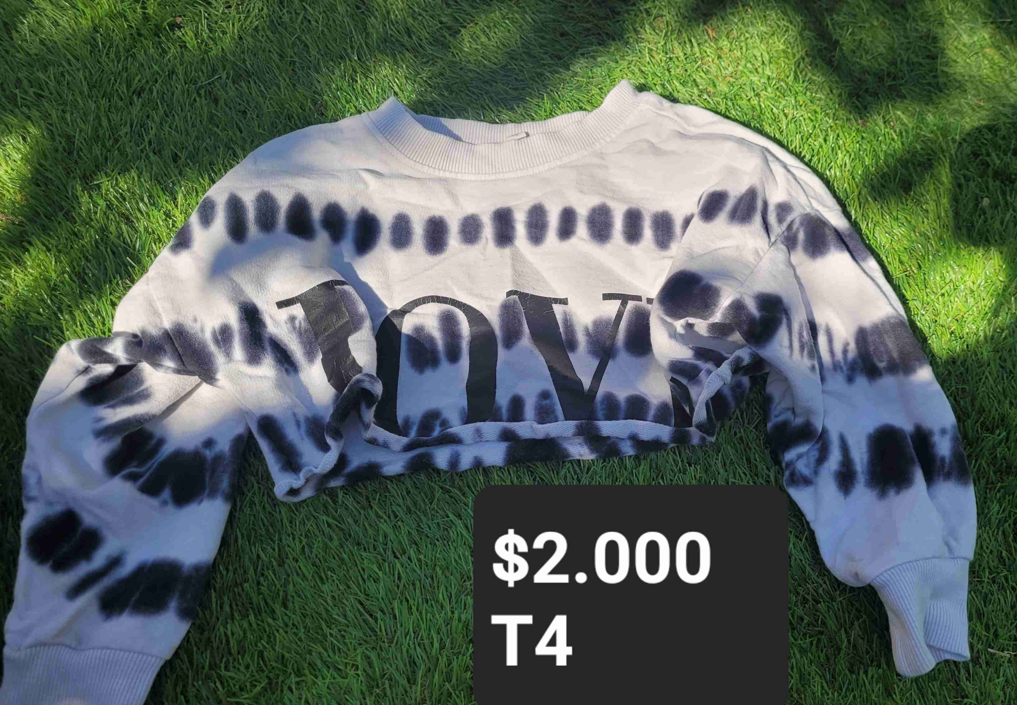 Polerón estilo tie-dye con la palabra LOVE en el frente. En buen estado, ideal para un look casual y cómodo. T 4 a 6