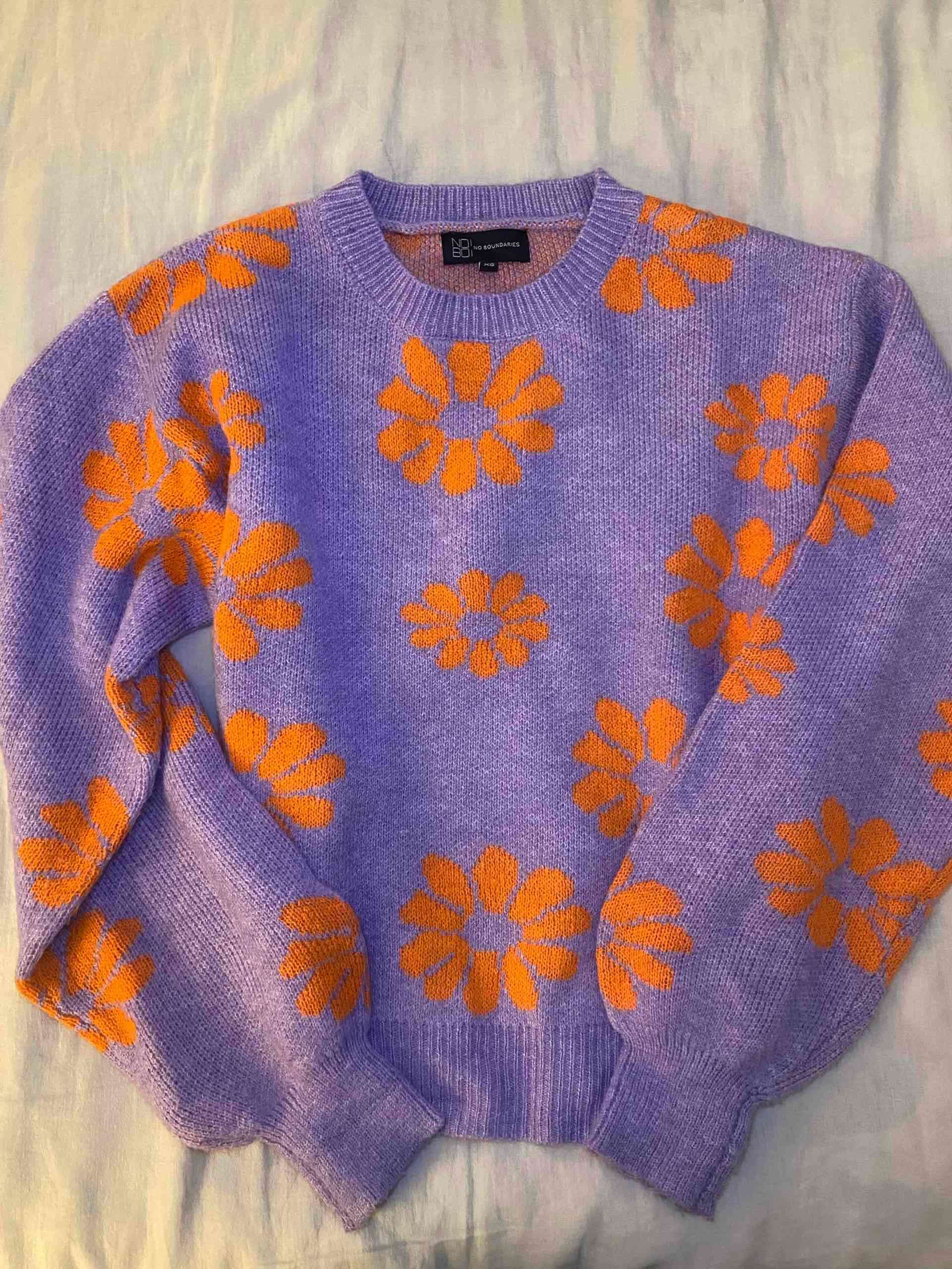 Suéter de estilo alegre y juvenil, con diseño de flores grandes. En buen estado, ideal para primavera y otoño.