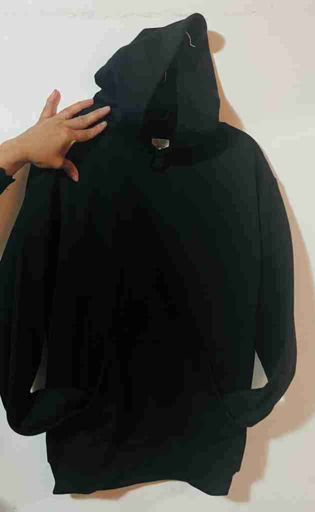 Polerón negro básico con capucha. Ideal para usar en días de frío.