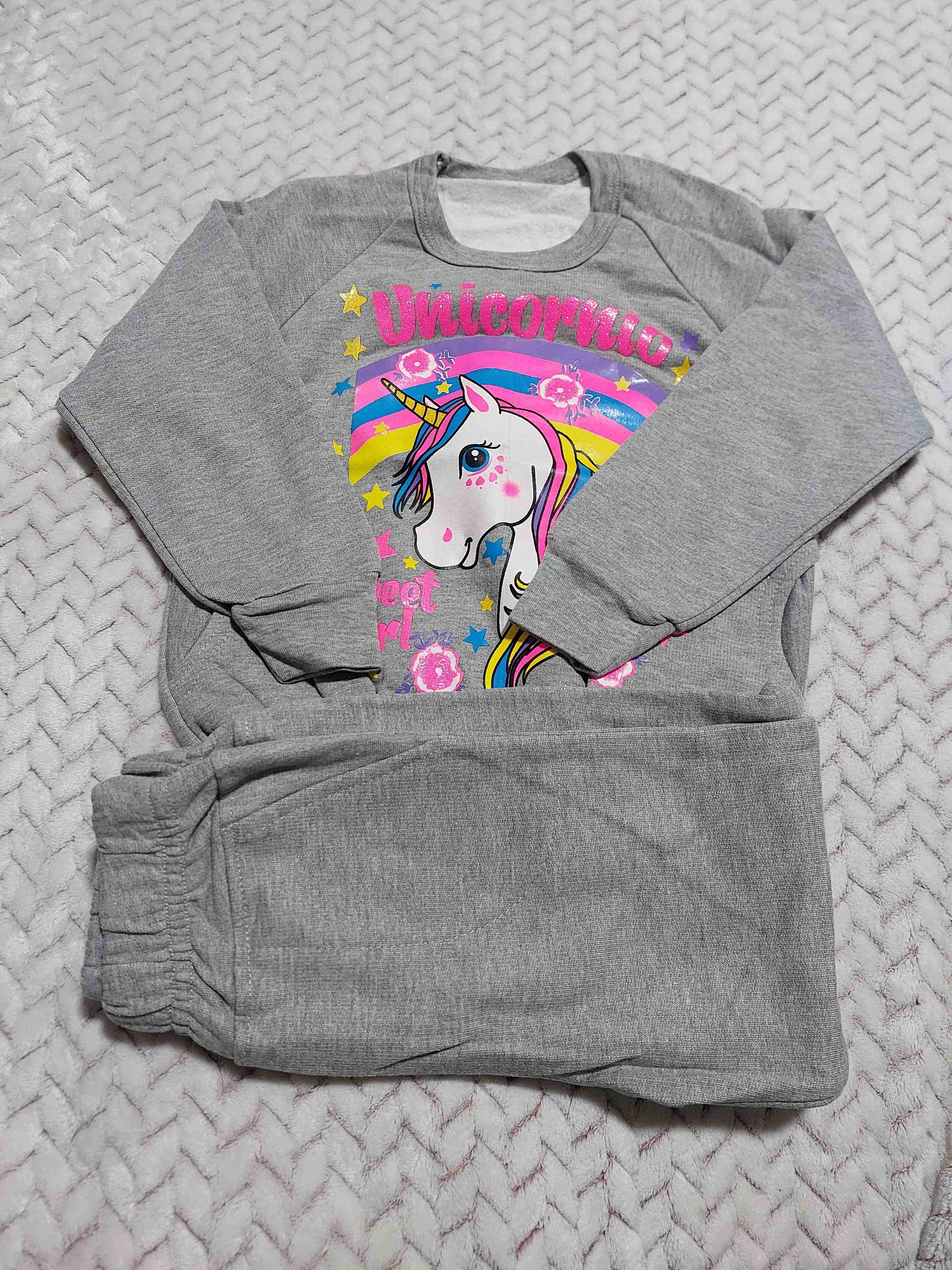 Buzo de dos piezas para niña con diseño de unicornio colorido. Muy cómodo y nuevo. Talla 6.