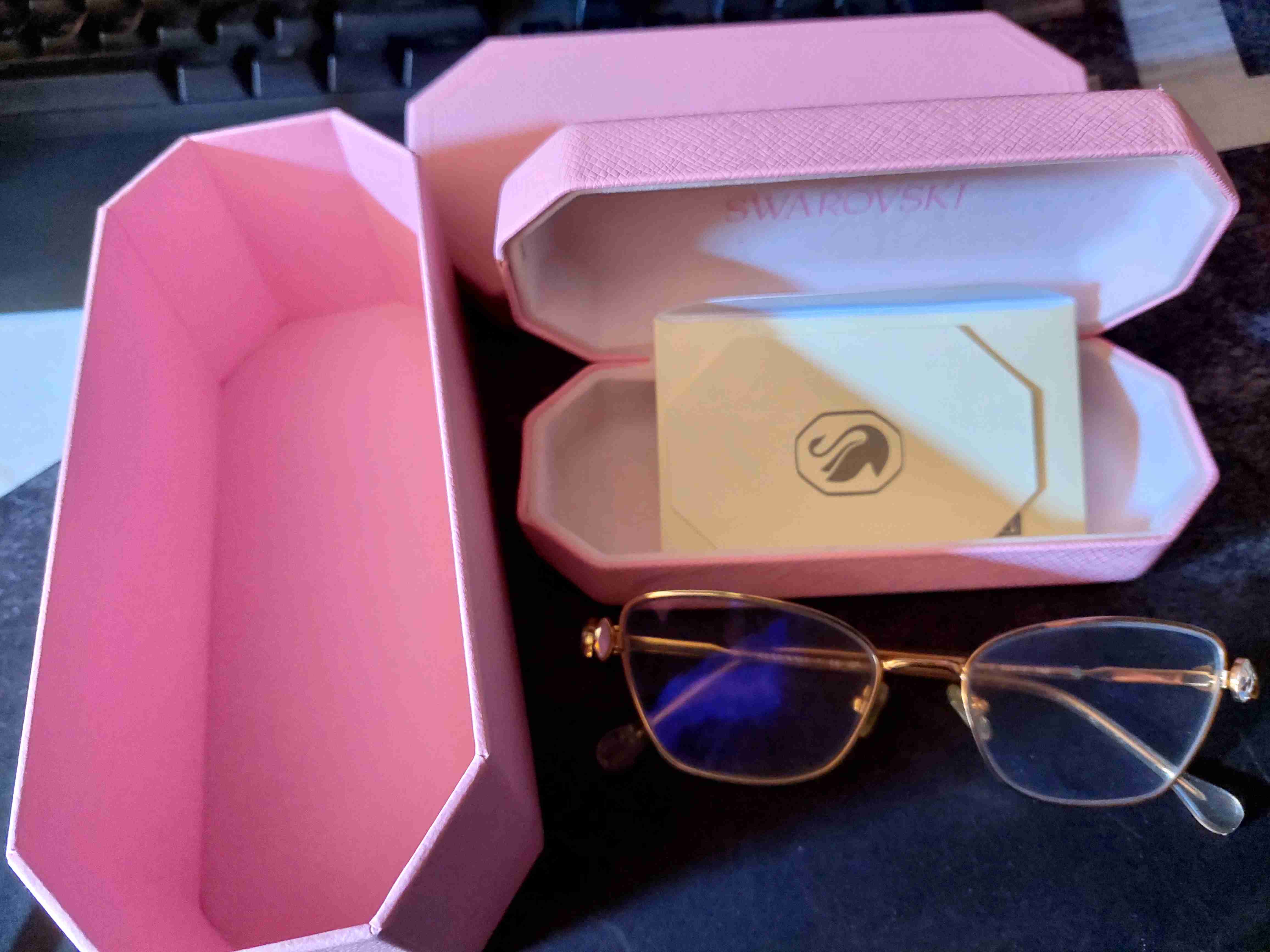 Elegantes gafas con marco dorado de Swarovski. Incluye caja original. En buen estado general, ideal para uso diario.