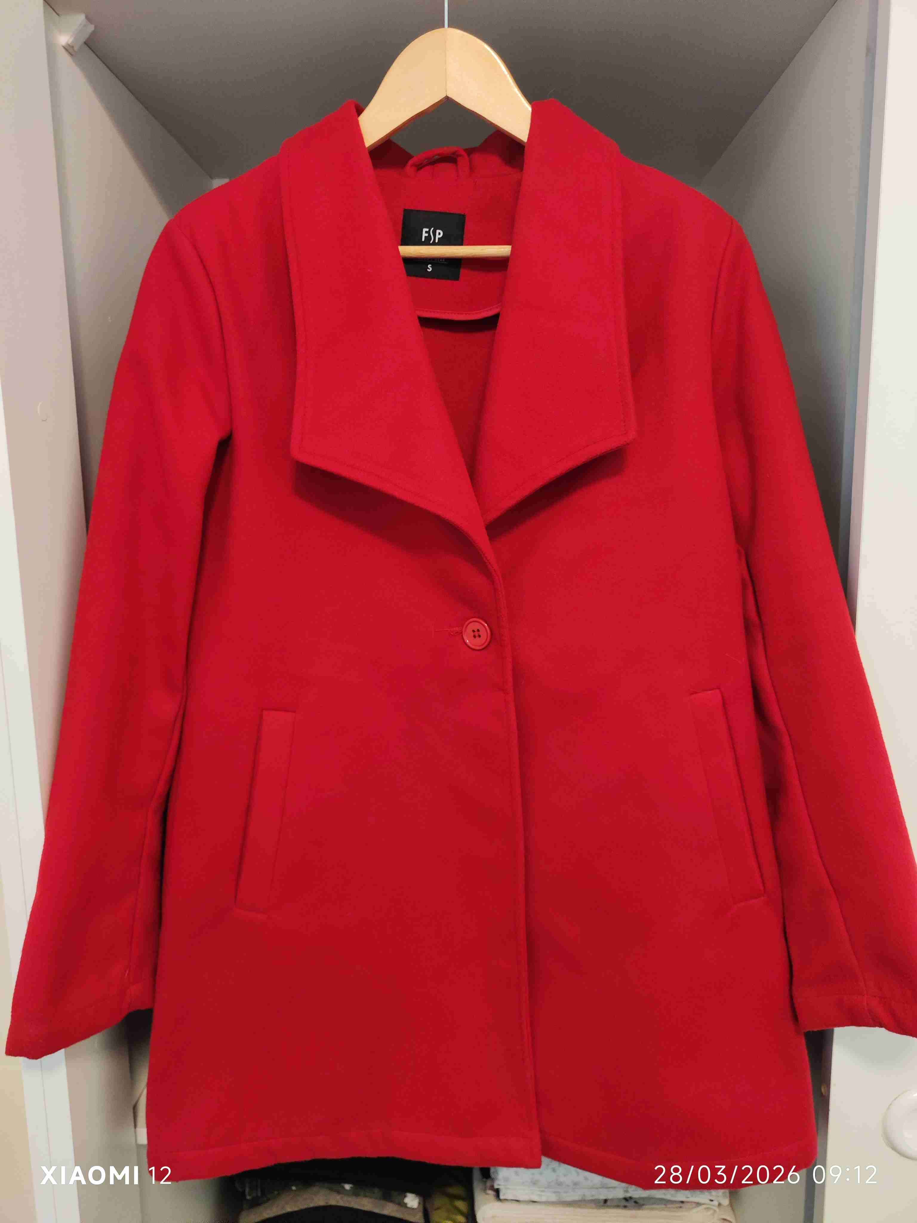 Elegante abrigo rojo con diseño clásico, perfecto para el invierno. En excelente estado.