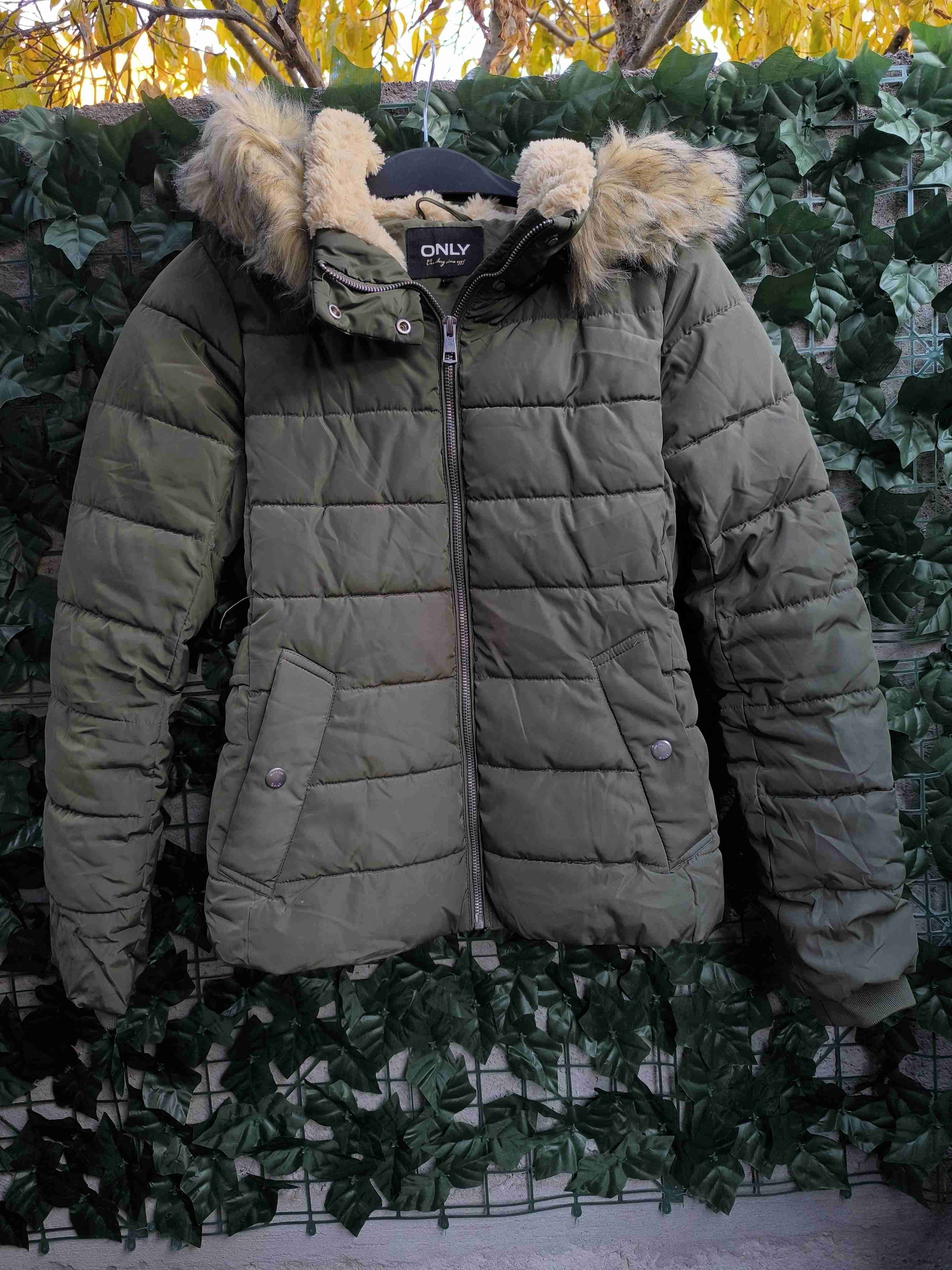 Parka verde con gorro de piel