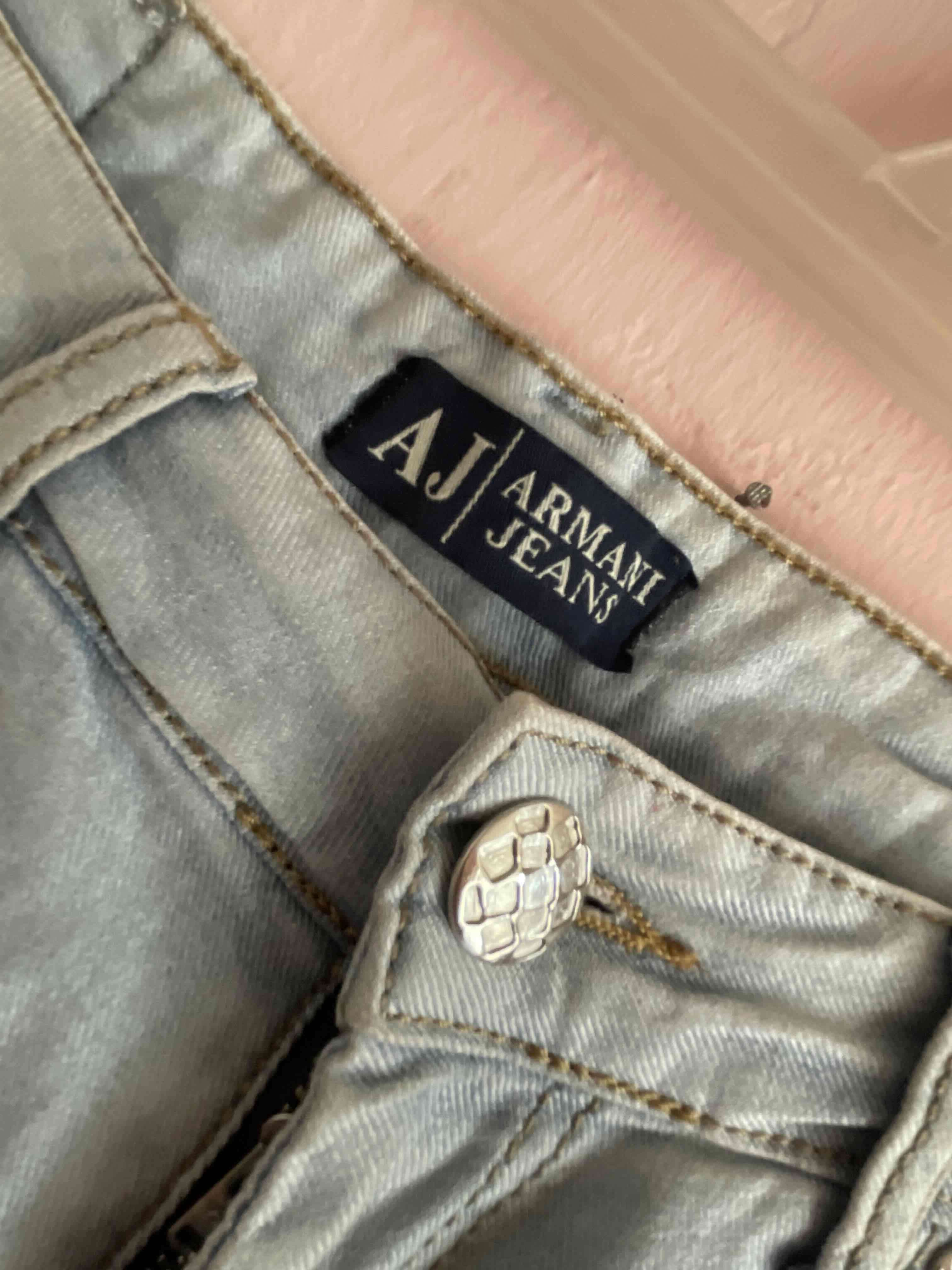 Jeans de mezclilla Armani en tono gris claro, ideales para un look casual y moderno. Buen estado.