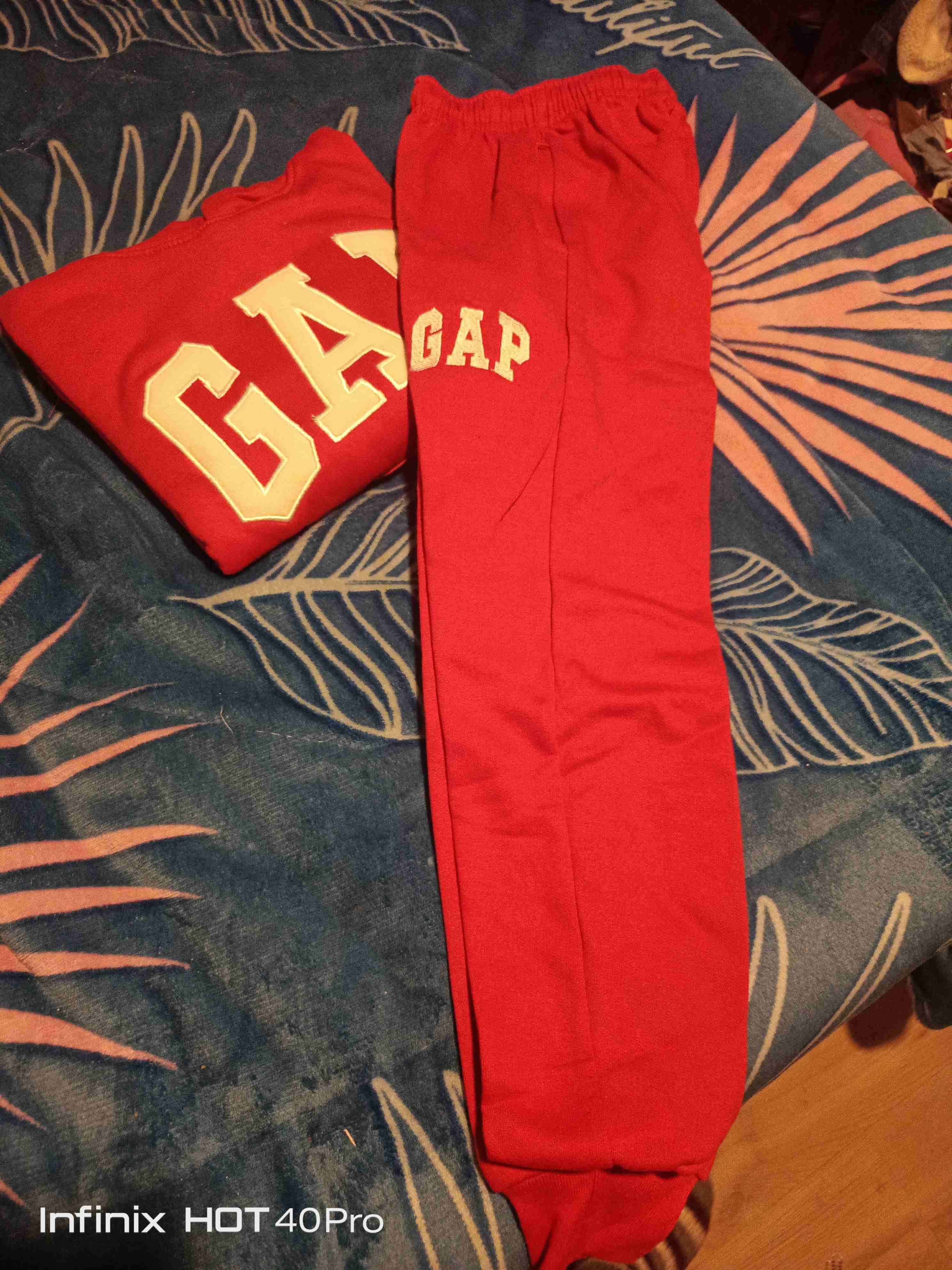 Conjunto deportivo color rojo, ideal para días fríos. Buen estado, con logo GAP. Perfecto para uso casual o deportivo.