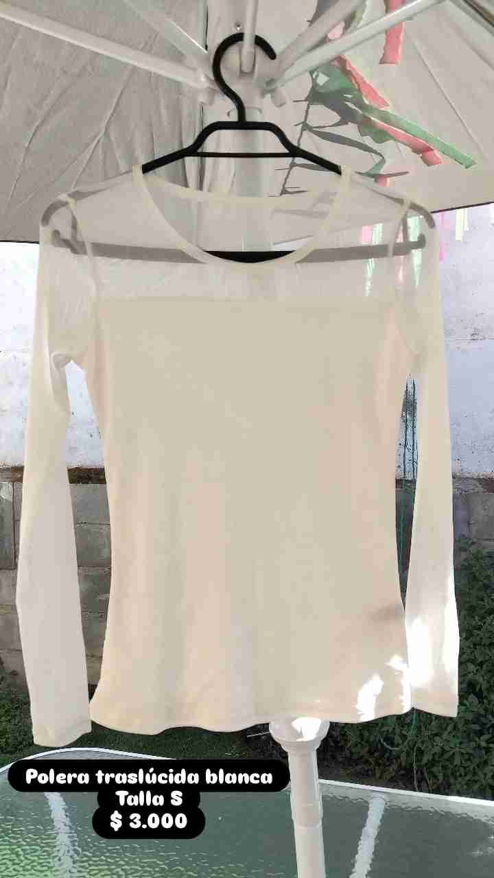 Polera blanca de tela translúcida, ideal para días cálidos. En buen estado, cómoda y fresca.