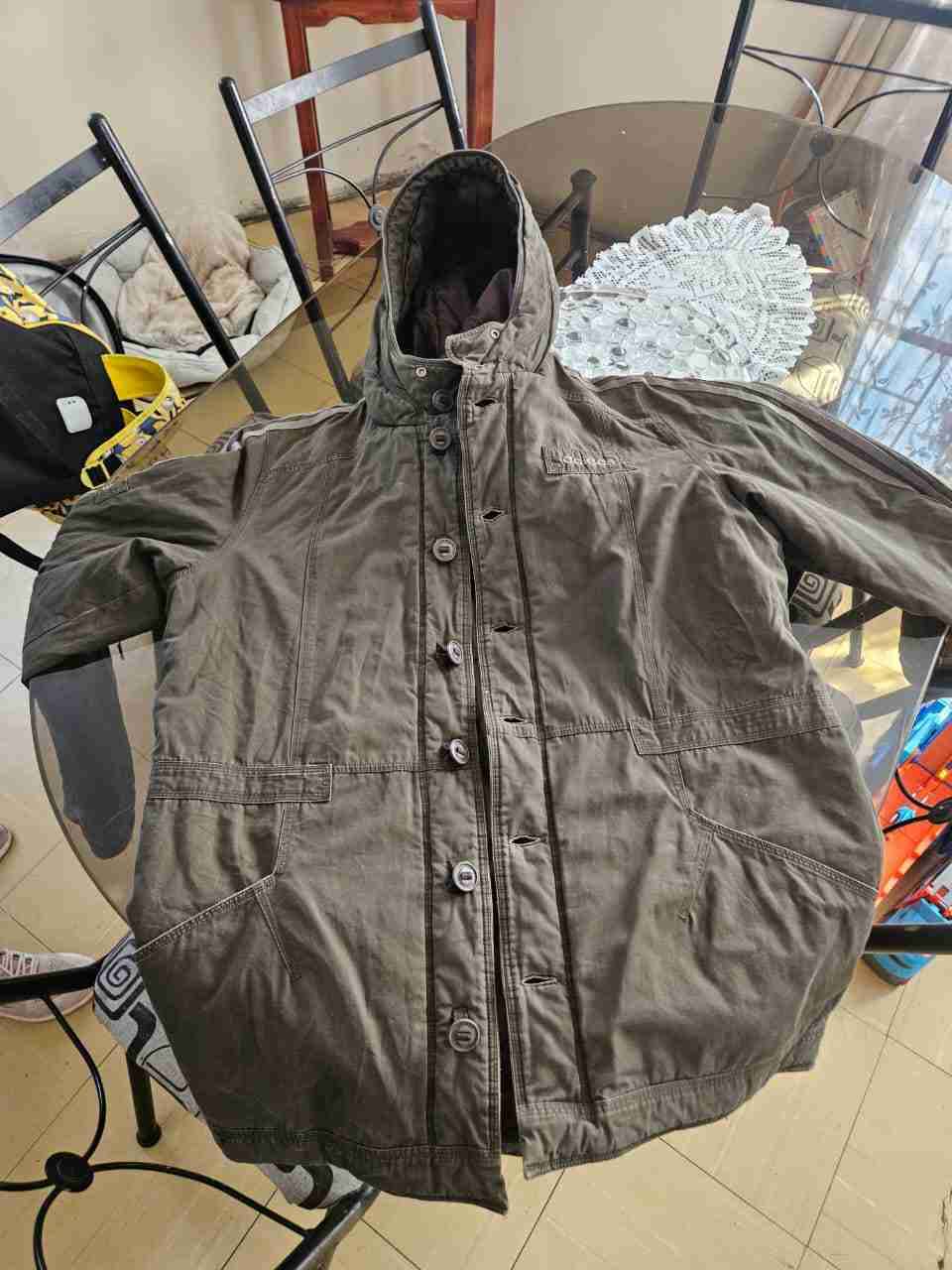 Abrigadora parka en color verde, ideal para el invierno. En buen estado y muy cómoda,marca Adidas talla L