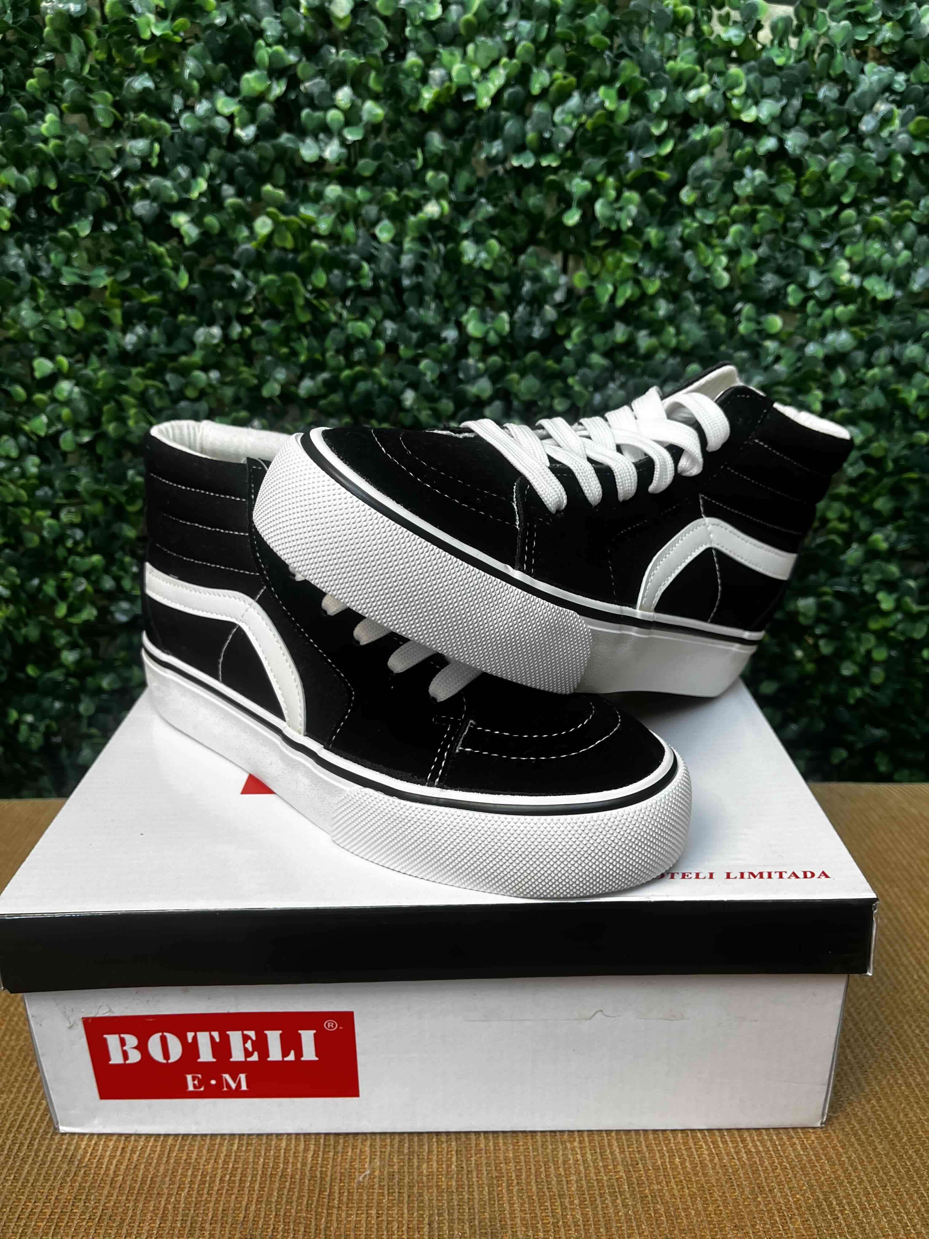 Zapatillas negras con diseño moderno y suela blanca. Ideales para un look casual. Buen estado.