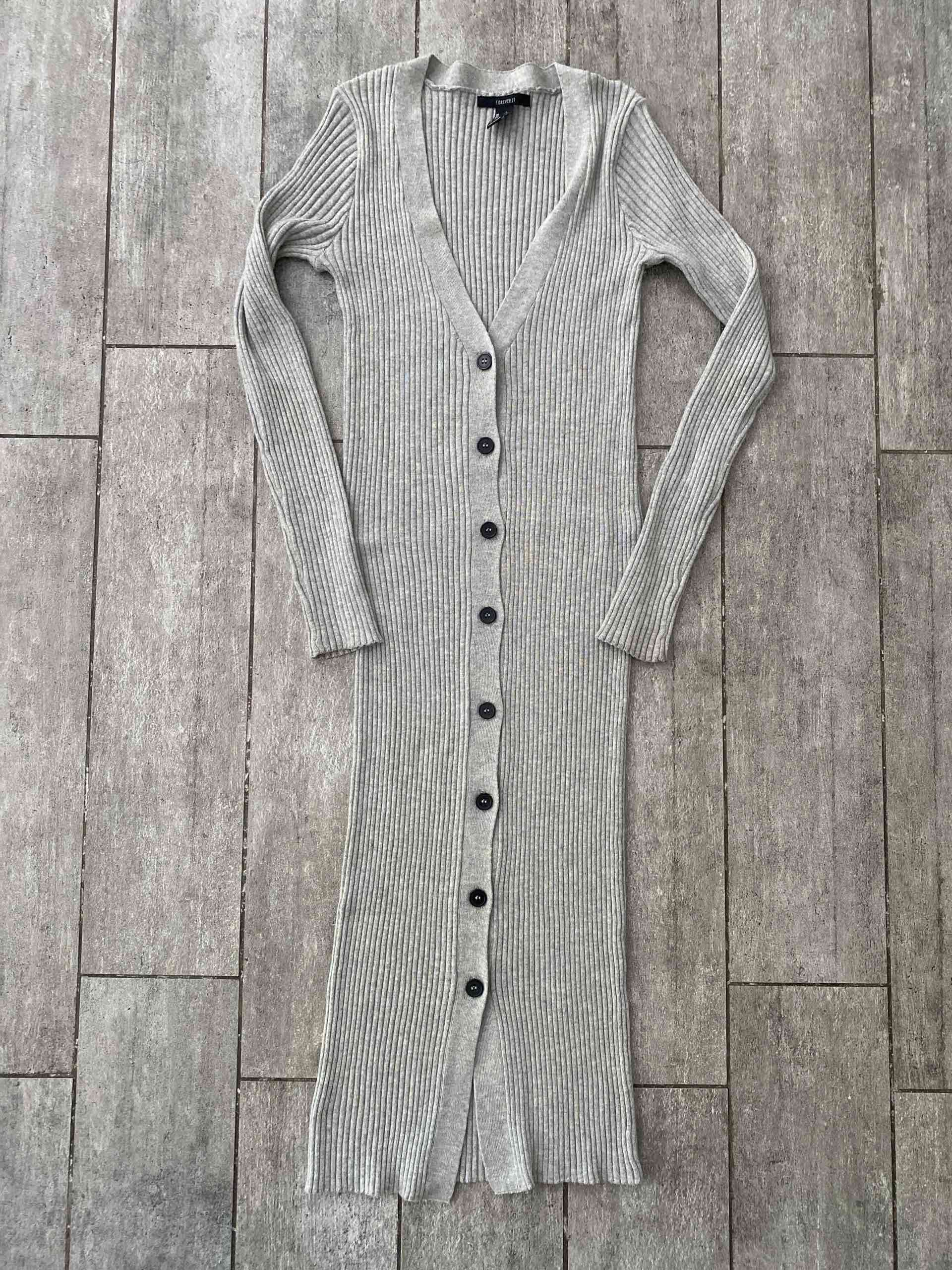 Vestido cárdigan gris de punto acanalado, marca forever 21 talla S, elasticado. Tiene muy poco uso