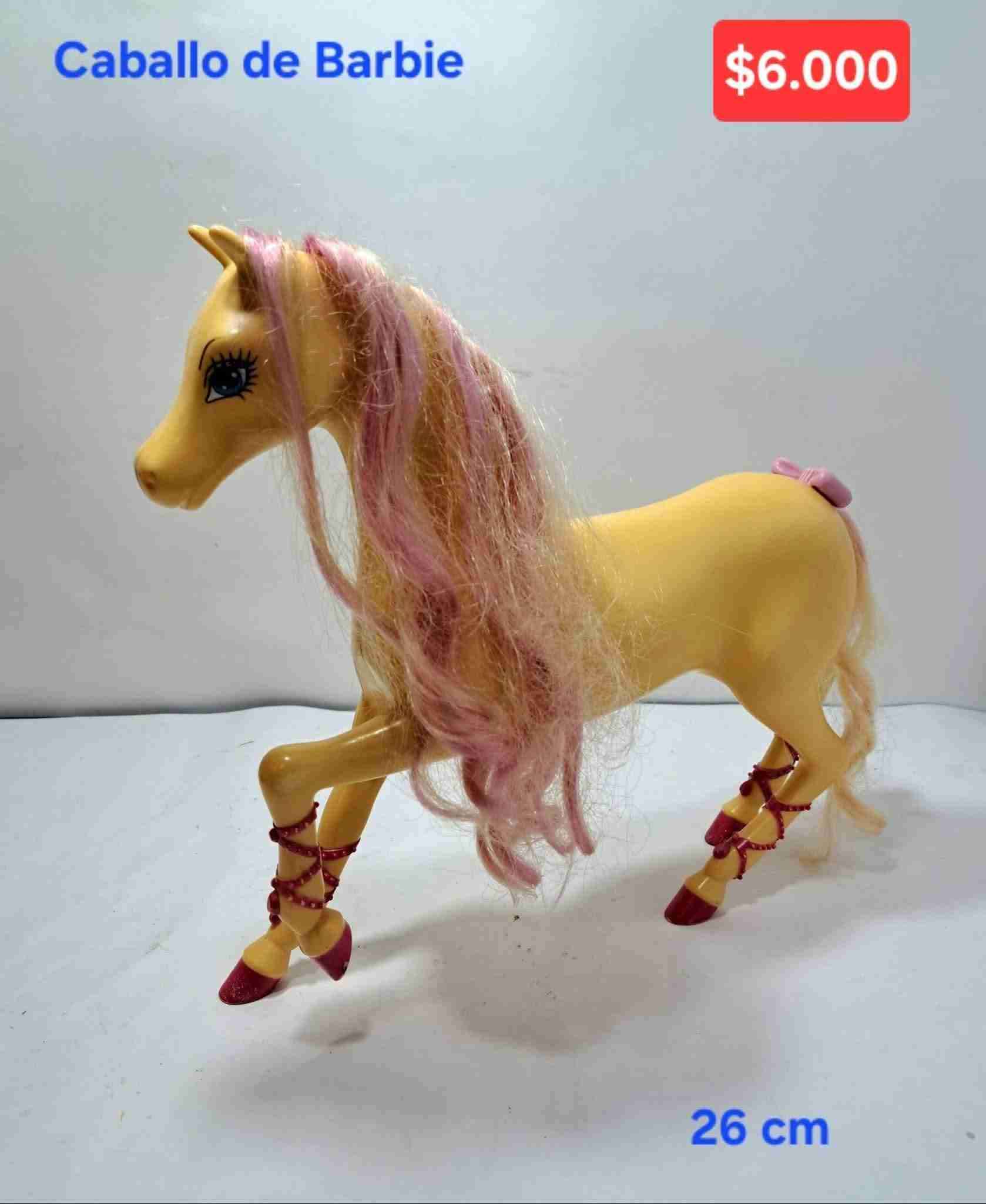 Caballo de Barbie en buen estado, ideal para complementar la colección de muñecas. Pelo rosa, mide 26 cm.