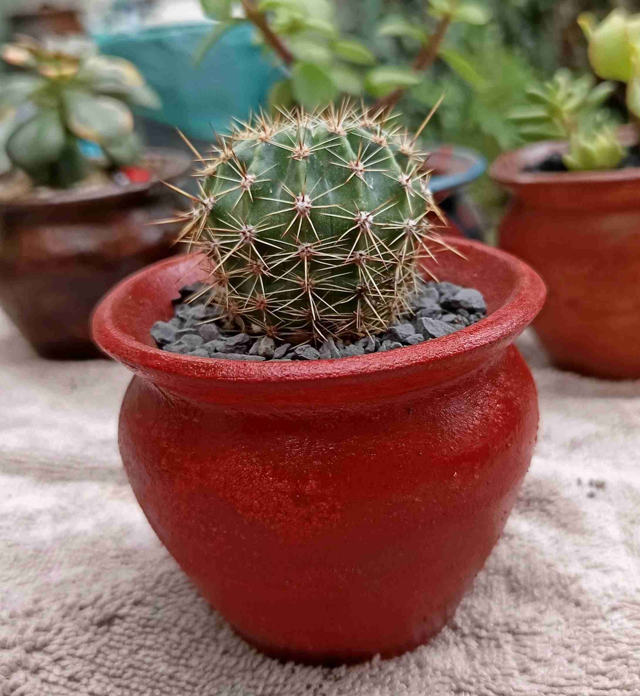 Cactus pequeño en una maceta de barro ideal para decorar interiores o regalos. Ideal para mamá