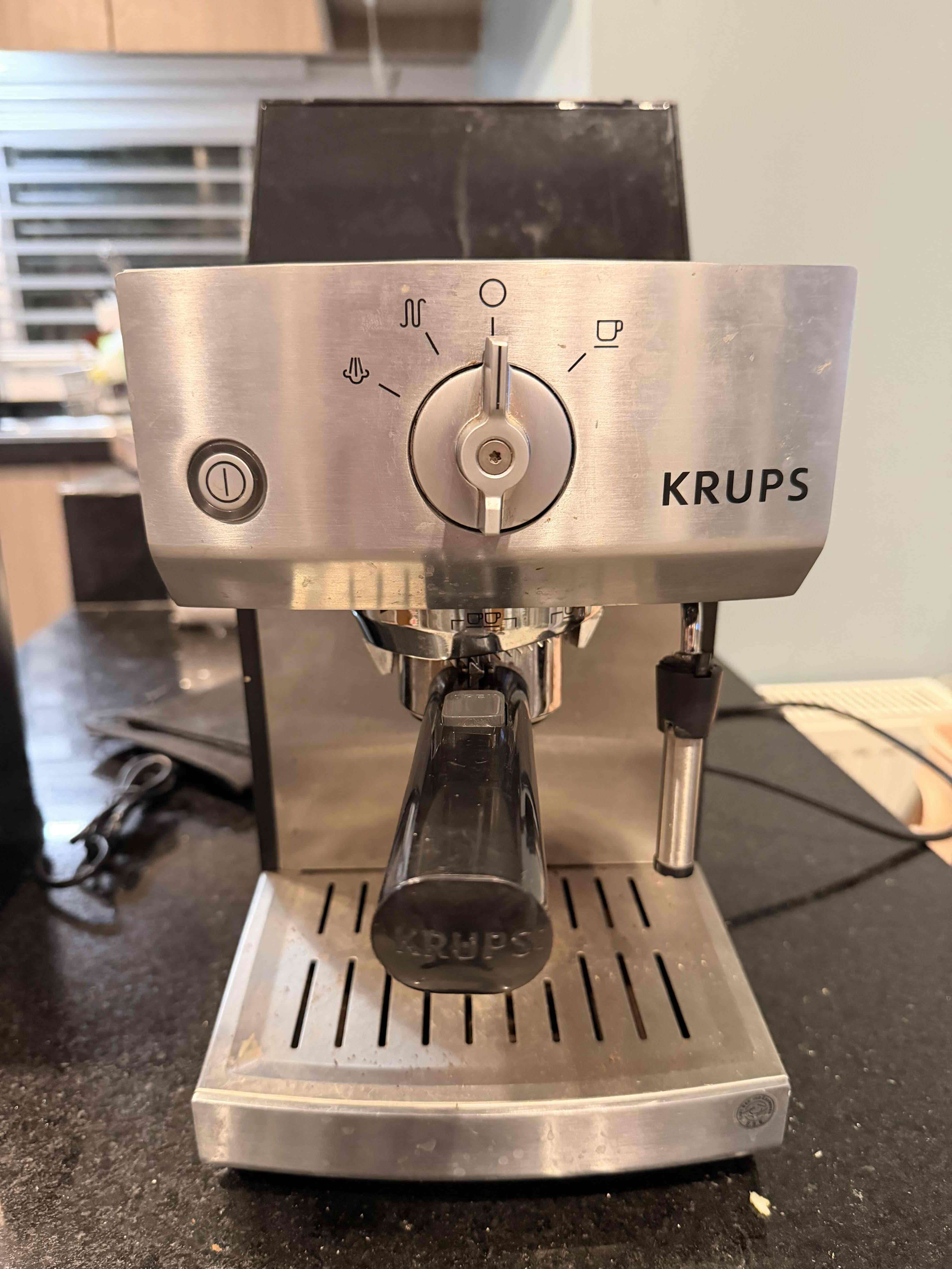 Cafetera espresso Krups de acero inoxidable en buen estado. Ideal para amantes del café. Incluye molinillo de la marca.