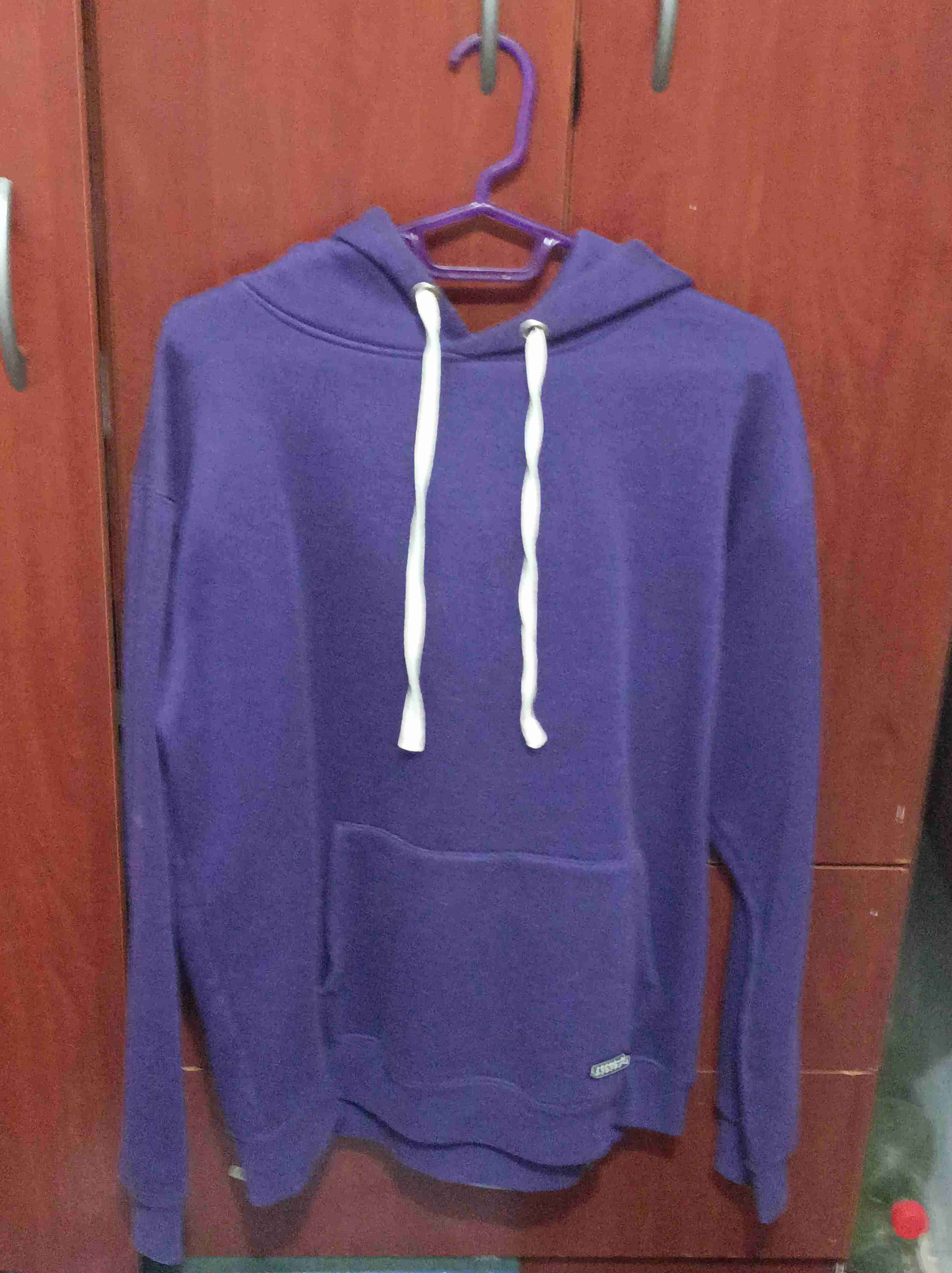 Polerón de color morado en buen estado. Ideal para días frescos, cómodo y con bolsillo frontal.