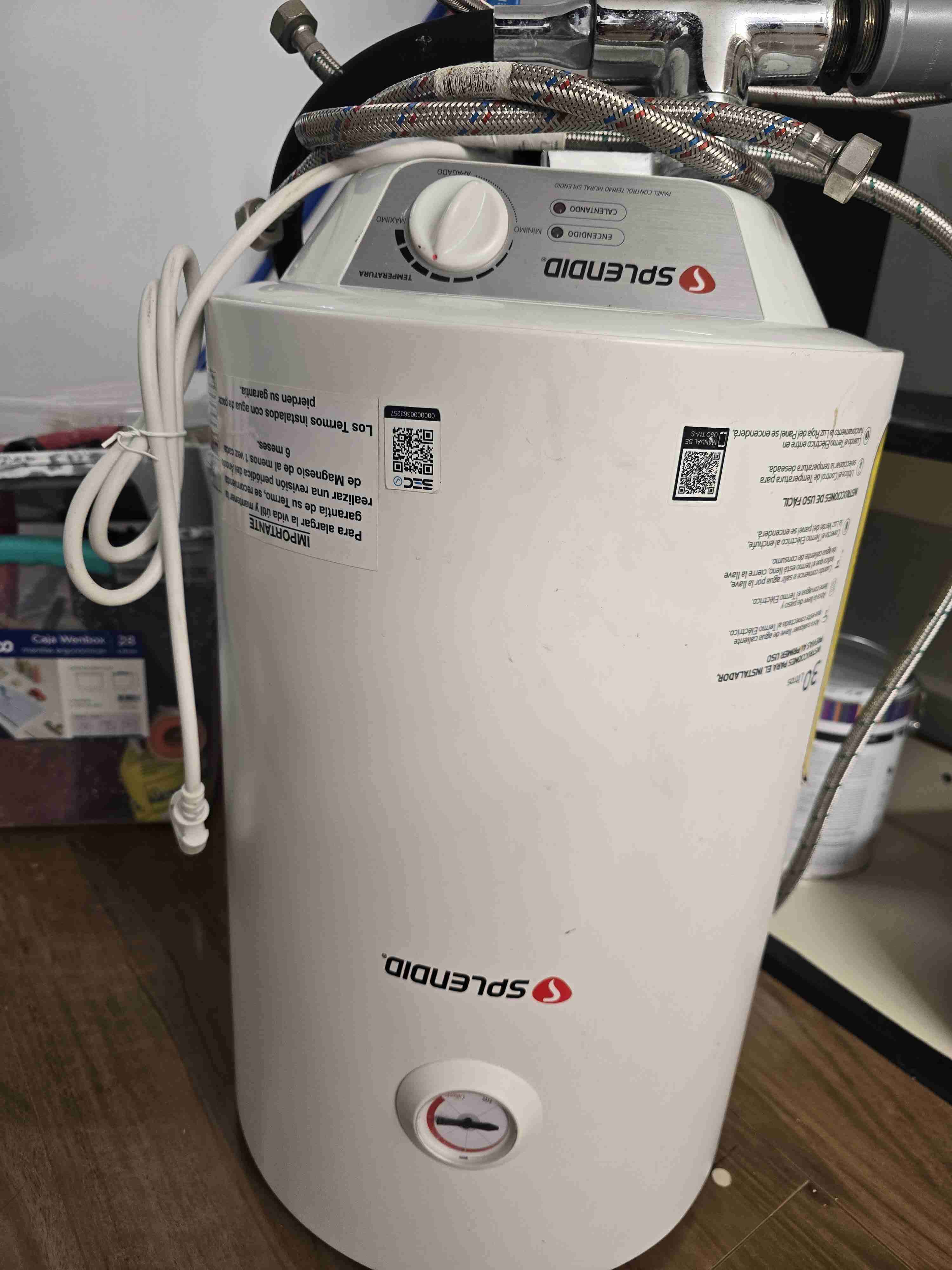 Calefón eléctrico blanco marca Splendid, ideal para calefacción de agua eficiente. En excelente estado, con poco uso previo, lo estamos vendiendo por el espacio que usaba en la oficina y el poco uso qué le dimos