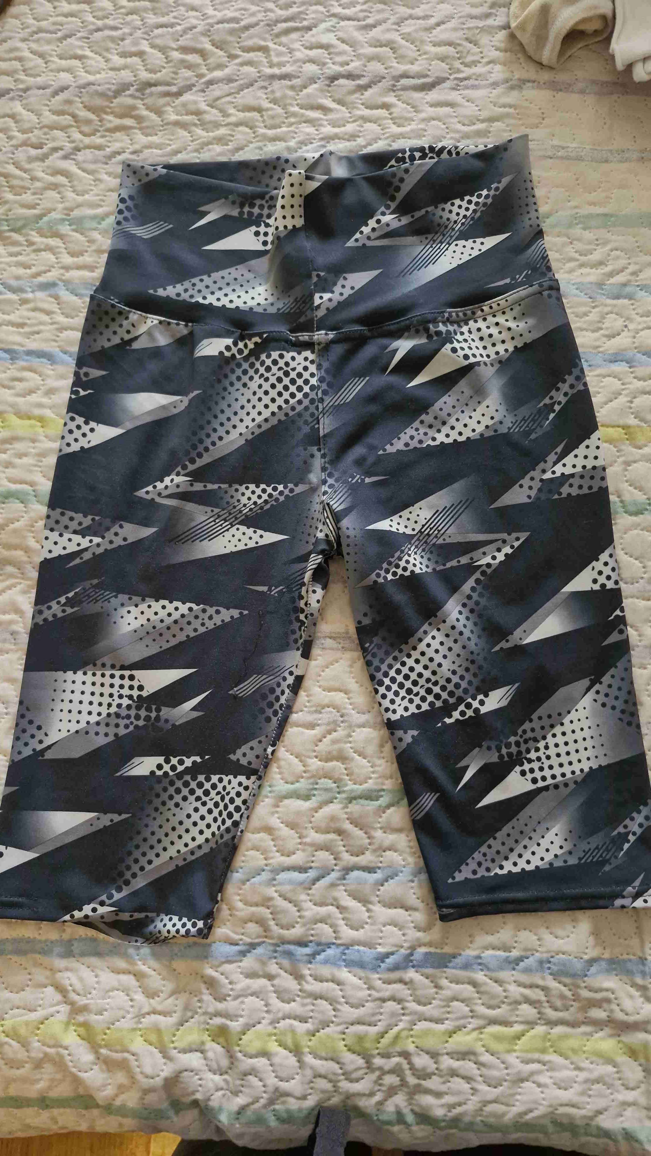 Leggings de entrenamiento oscuros con patrón geométrico. Buen estado, ideales para actividad física.
