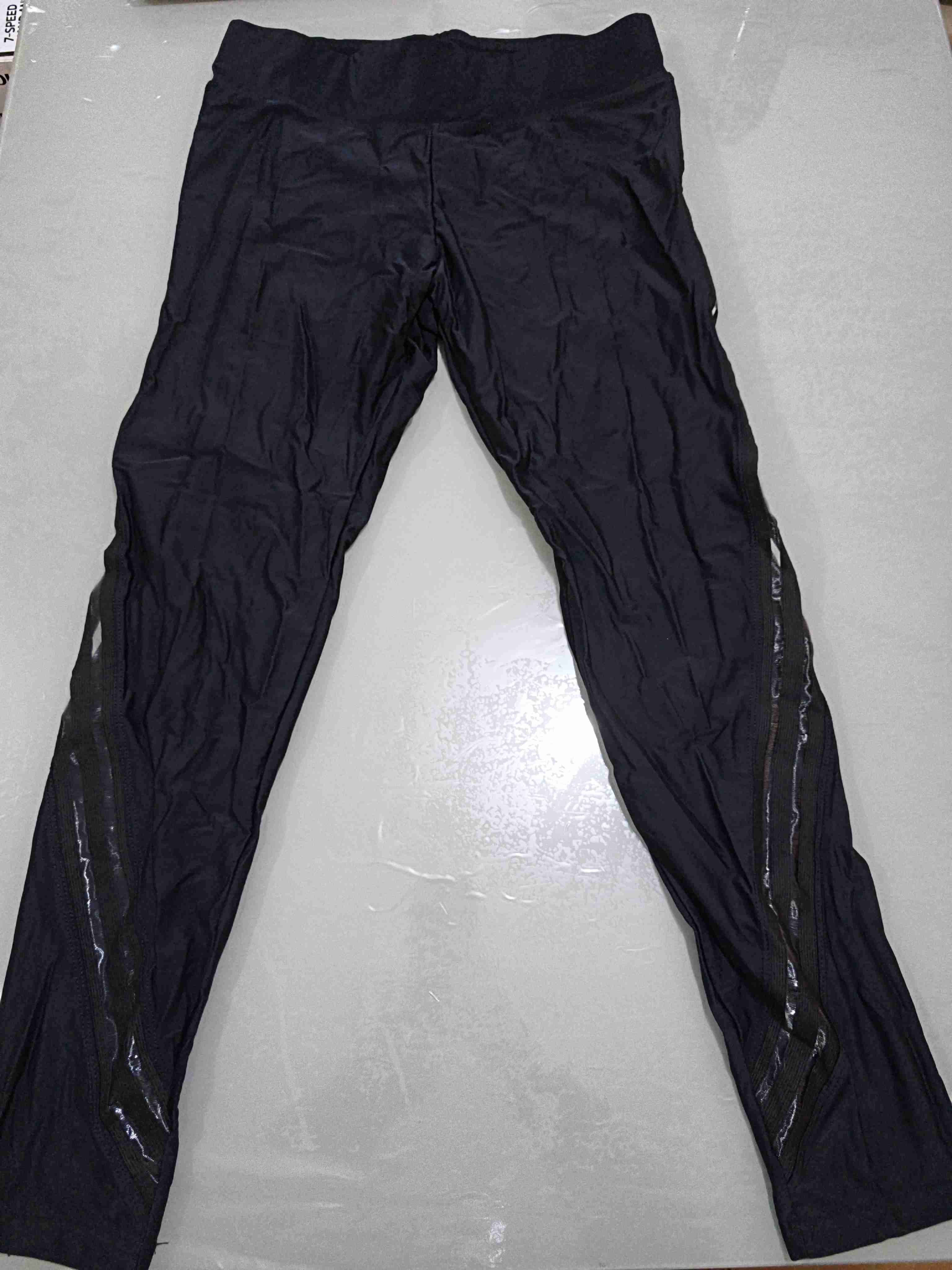 Leggings cómodos y elásticos, perfectos para entrenamiento. Estado nuevo con etiqueta, ideal para ejercicio. Tela suave, semisatinada. Altamente elasticada (estira hasta dos tallas más aproximadamente) Tomar en consideración que las medidas en imagen son SIN ESTIRAR. modelo moderno, hermoso, con transparencias en los laterales. Es una calza fuerte de alta resistencia para entrenamiento o salidas, práctica, cómoda, versátil, hermosa. Talla aproximada 42/44 (hasta 50 aprx completamente estirada. Medidas en imagen.