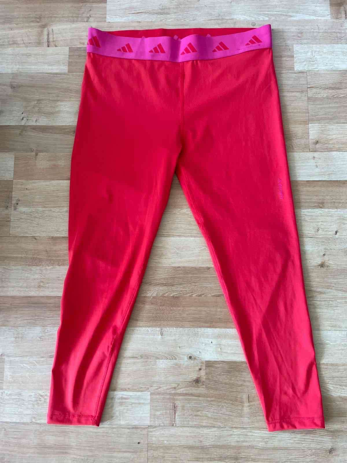Leggings deportivos rojos con pretina elástica. Perfectos para hacer ejercicio o uso diario. Marca Adidas. Talla XL