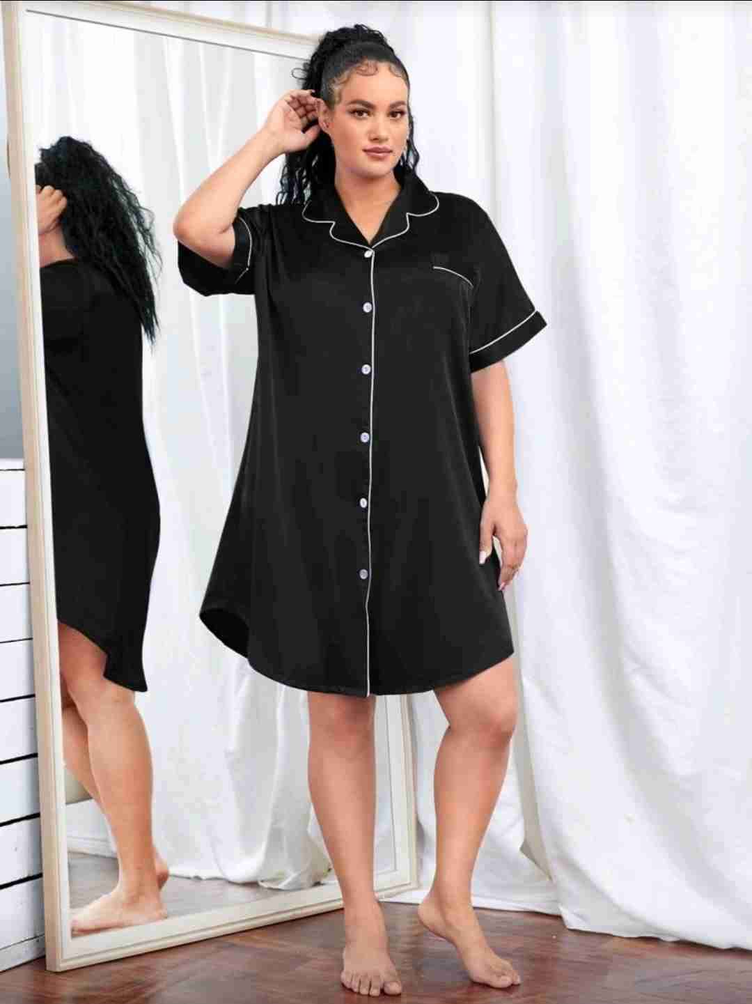 Camisón negro de botones, estilo cómodo y fresco para dormir, suave y ligero, ideal para usar en casa.