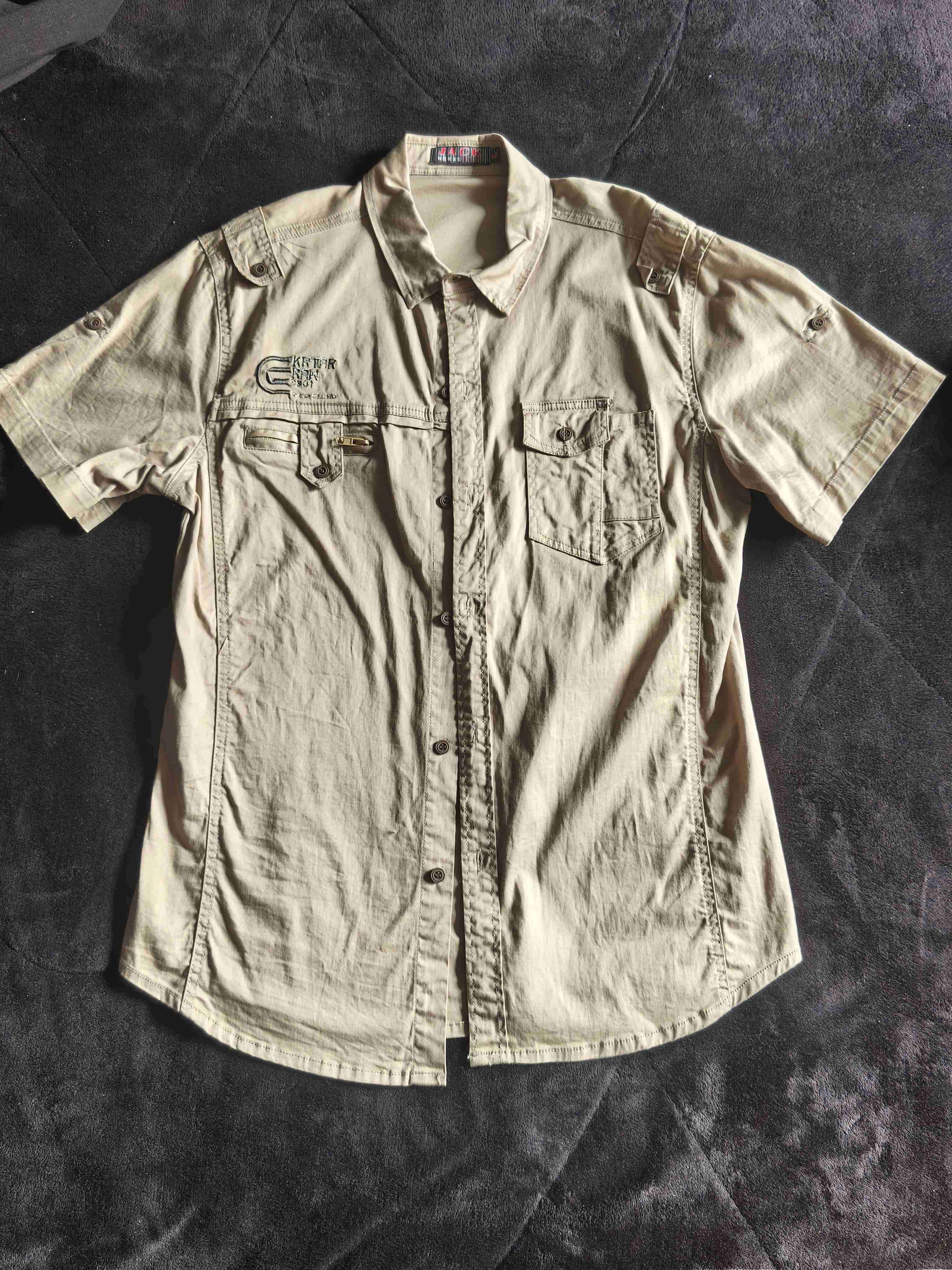 Camisa beige manga corta, perfecta para un look casual. En buen estado, ligera y cómoda.