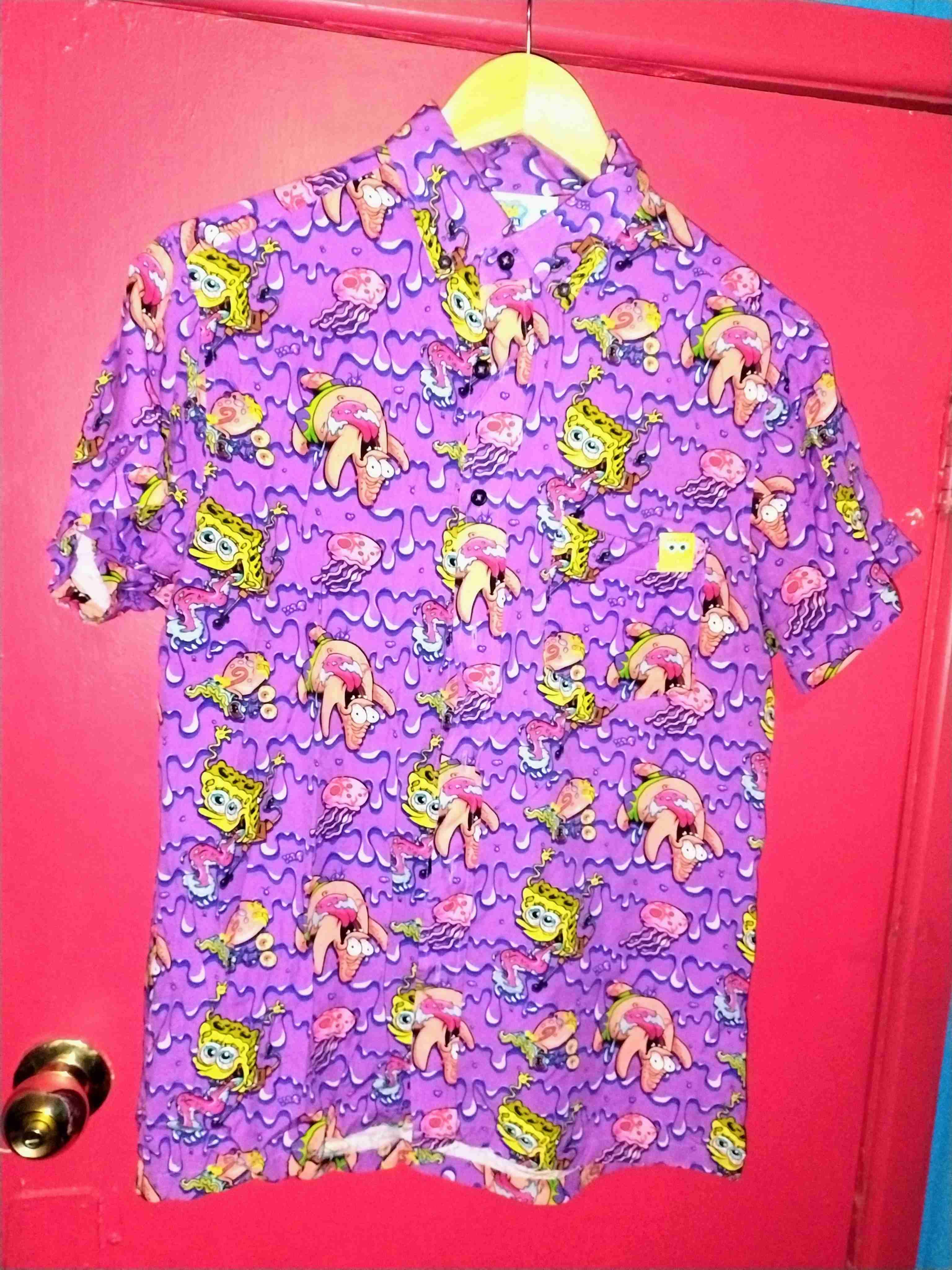 Camisa colorida con diseño de Bob Esponja talla s, ideal para un look divertido y casual. En buen estado.