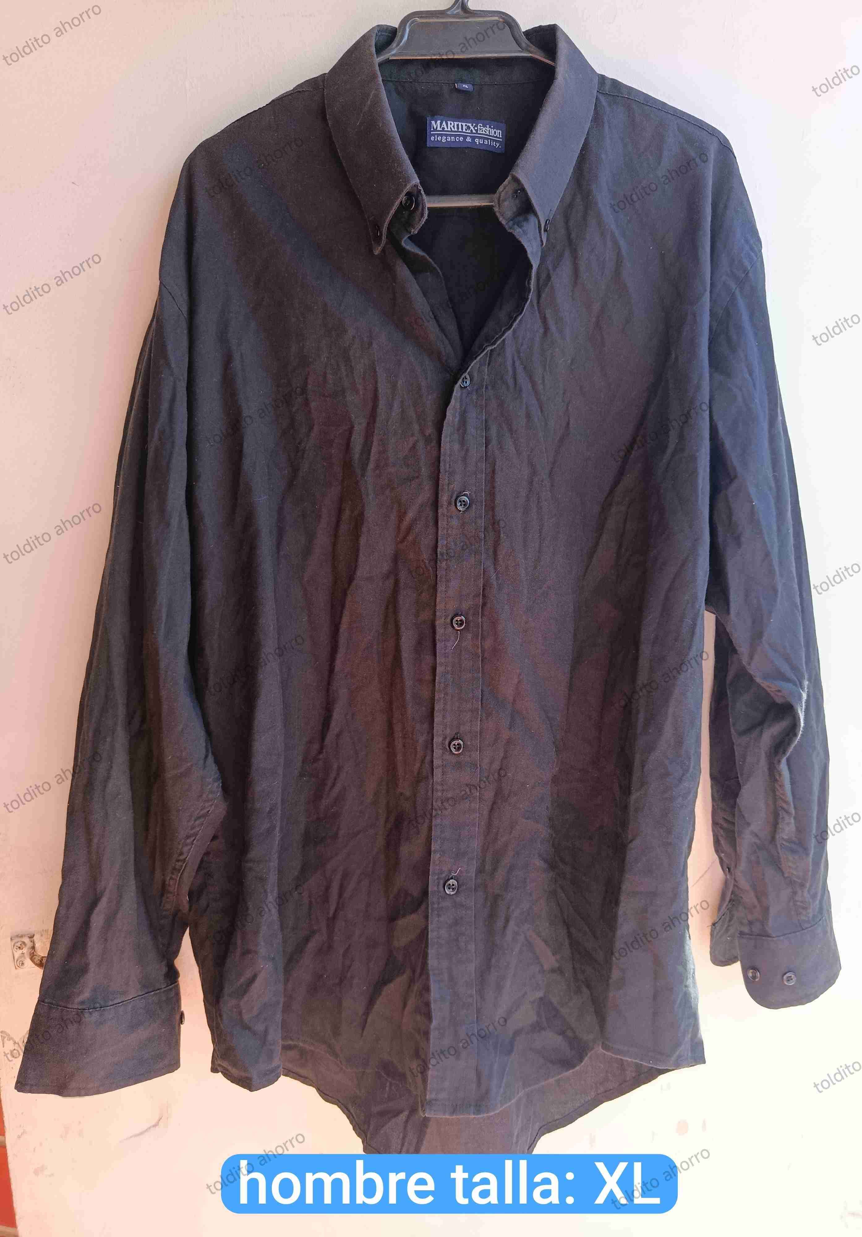 Camisa negra de vestir, ideal para ocasiones formales. Está en buen estado.