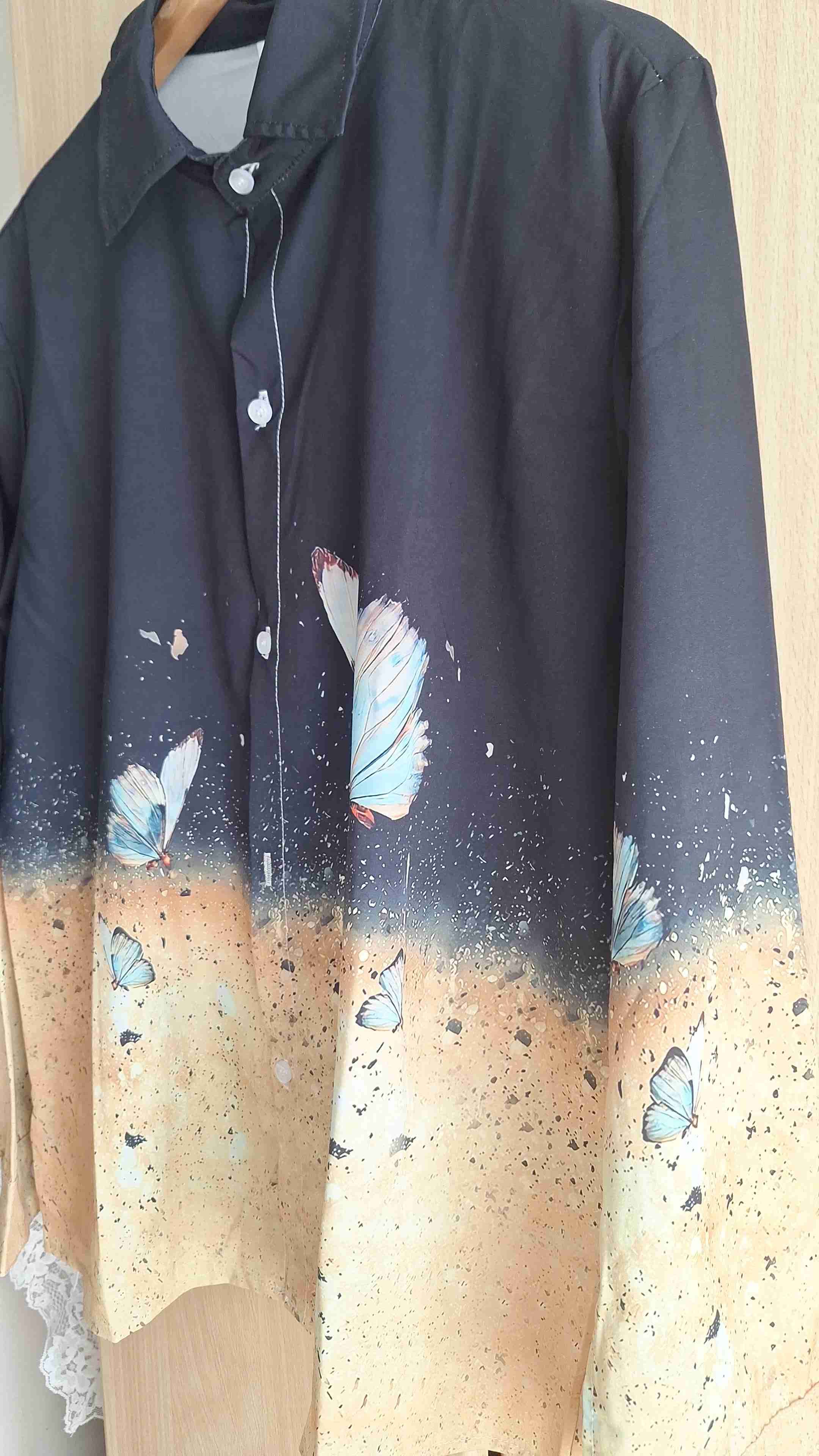 Camisas de manga larga, color negro con diseño de mariposas.blanca y amarilla Ideal para ocasiones casuales. Buen estado general.casi nuevas