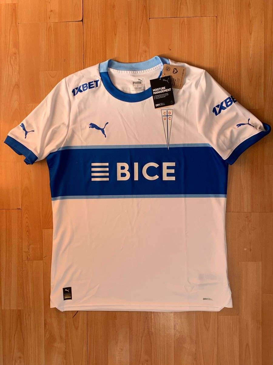 Camiseta oficial nueva del club Universidad Católica con diseño moderno. Ideal para hinchas o uso deportivo. En perfectas condiciones con etiquetas.